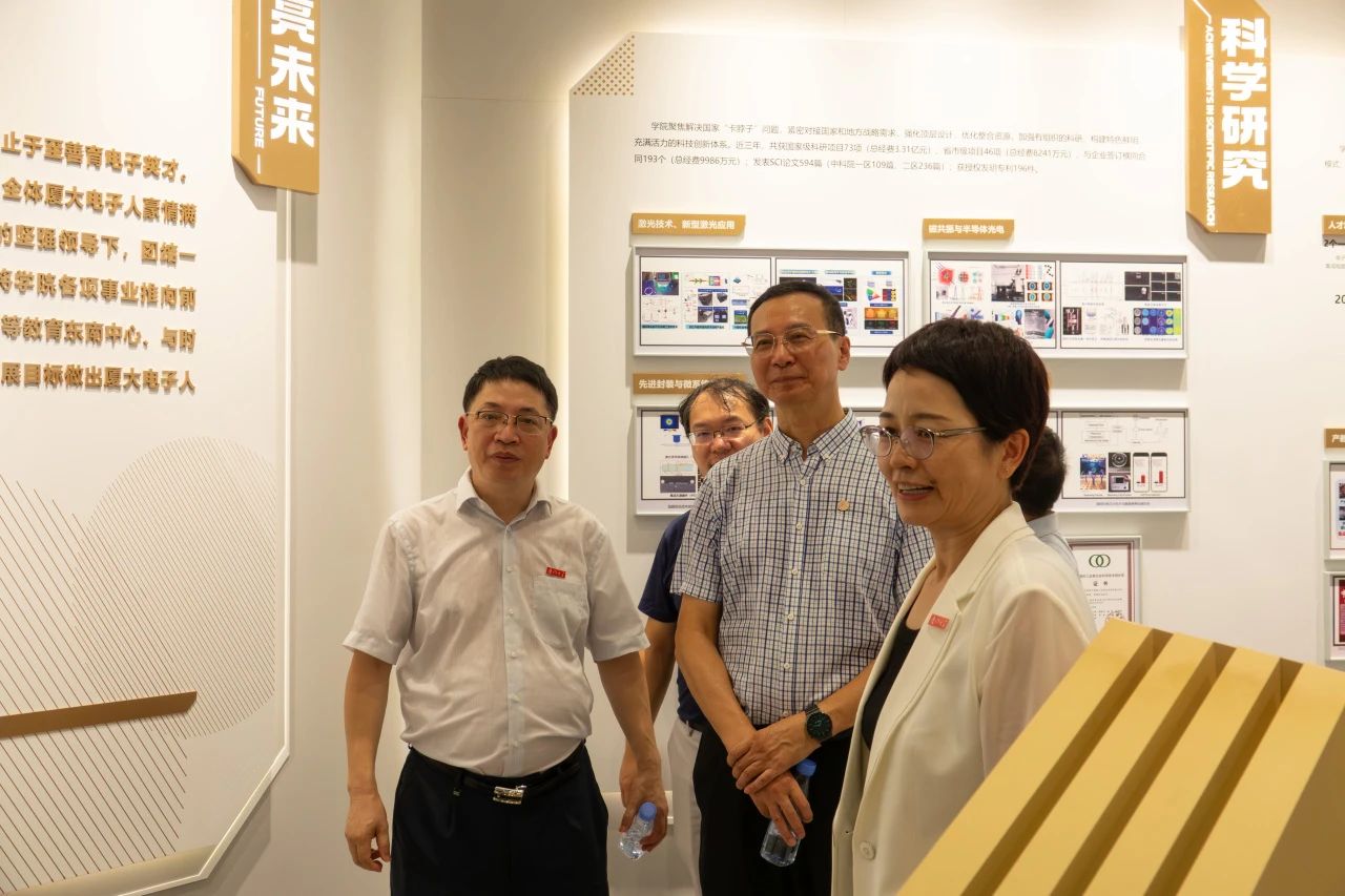 赖虹凯对电子学院近年来在思政育人、科教融合、产教融合、创新驱动发展等工作表示肯定,对学院院史文化长廊的顺利开展表示祝贺。他表示,长廊记录了厦大电子学科发展与奋斗的历程,提供了丰富宝贵的精神财富。党的二十届三中全会指出教育、科技、人才是全面建设社会主义现代化国家的基础性、战略性支撑,大学在这一进程中扮演着重要角色。他强调,学院要积极响应教育部要求,聚焦人才自主培养能力提升、高水平科技研发和国家经济社会发展服务三大内容,推动教育理念体系,大力弘扬教育家精神,加强师资队伍培养,为国家培养更多科技创新后备人才。