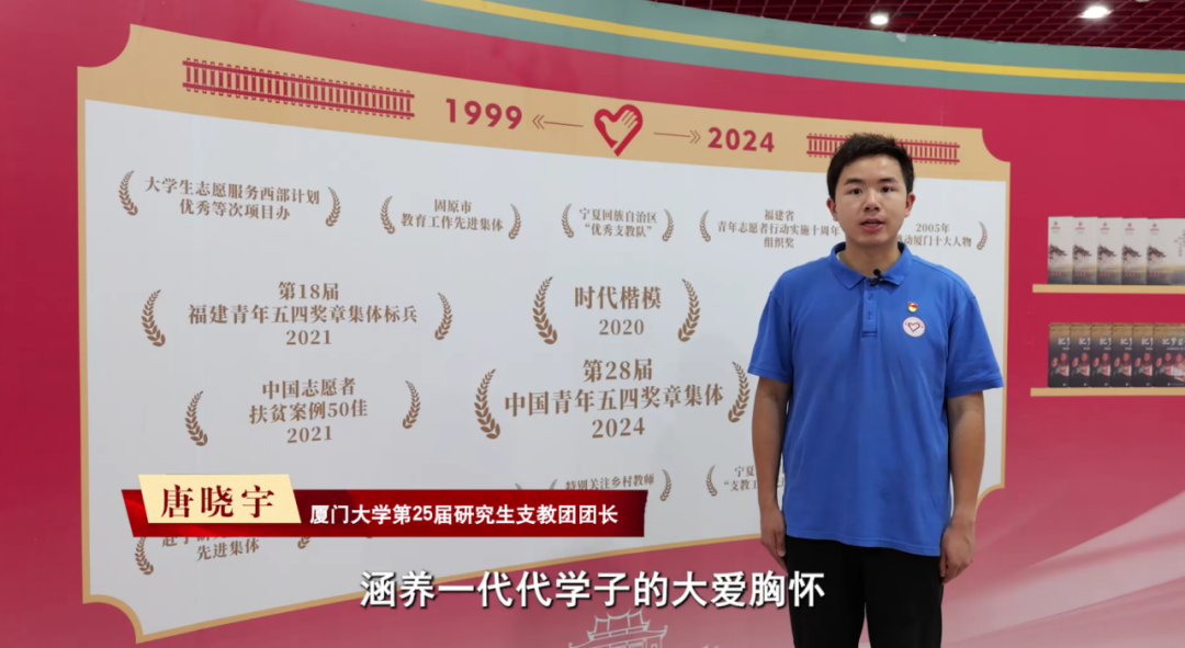 厦门大学以“致吾知于无央,充吾爱于无疆”的文化基因涵养一代代学子的大爱胸怀,也引领着我所在的闽宁协作厦门大学宁夏研究生支教团,25年间接力为宁夏山区的孩子们带去知识和希望。我们打造“这条小鱼在乎”公益助学品牌,募集奖助学金1500余万元、资助2万余名困难学生。从鹭江之滨到西北戈壁,书写了跨越2000多公里的教育帮扶“山海情”,支教团作为“闽宁对口扶贫协作援宁群体”的组成部分被中宣部授予“时代楷模”称号,获评“中国青年五四奖章”集体。这也激励着广大青年学子与我们一道,牢记习近平总书记“坚定不移听党话、跟党走,争做有理想、敢担当、能吃苦、肯奋斗的新时代好青年”的嘱托,扎根基层一线、投身科研报国、弘扬传统文化……以奋斗书写无悔青春答卷。
