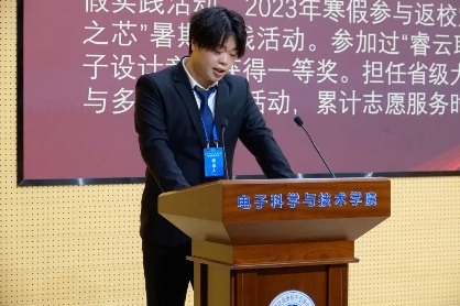 9月21日,电子科学与技术学院本科生第七次学生代表大会在南存钿楼C栋报告厅召开。学院党委副书记林蕊,团委书记胡凡,辅导员林燕红、黄积杰,校学生会主席团代表冯钤、航空航天学院主席团代表苏浩、信息学院主席团代表郑海阳、环境与生态学院主席团代表宋佳悦、药学院主席团代表罗京以及学院本科生学生代表参加大会。