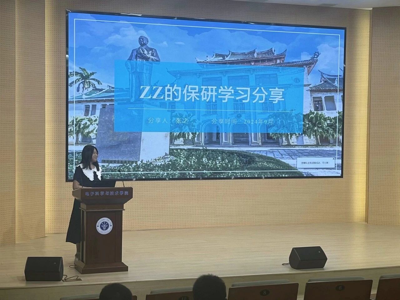 张之为新生们展示了自己的保研规划,为新生们介绍了如何提高学业成绩、参加学业竞赛、收获科研成果并获得推免资格。