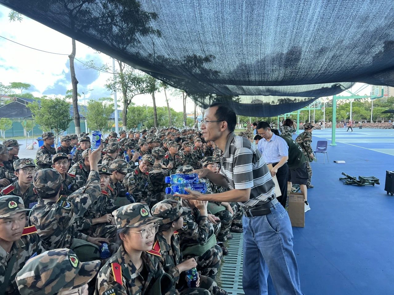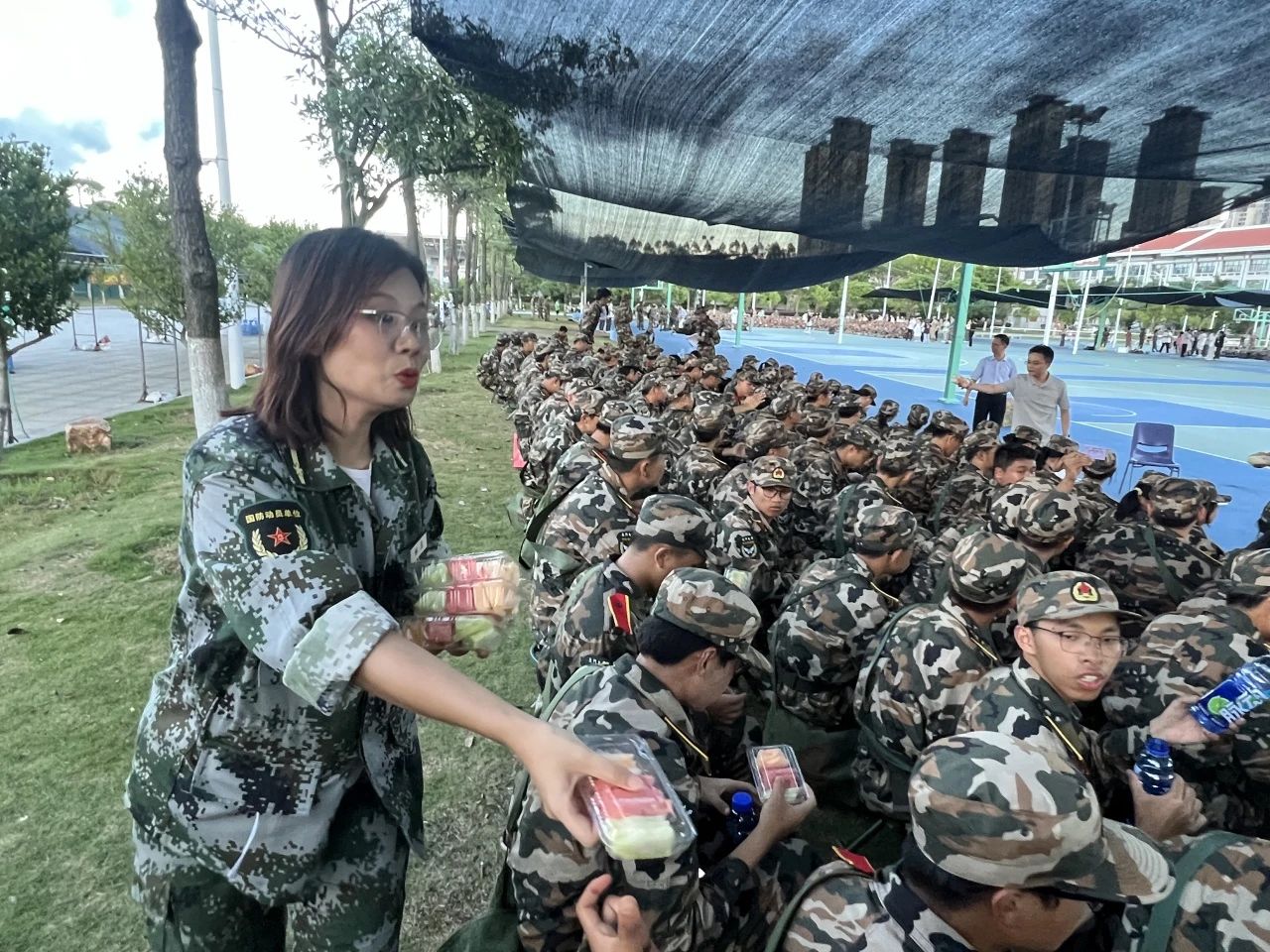 学院为刻苦训练的同学们准备了丰富的慰问品,包括各种水果、饮品等,在酷热的天气中为同学们带来一丝清凉,让大家感受到了来自学院的关怀与鼓励。