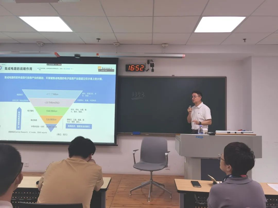 李虹以其深厚的行业背景和敏锐的市场洞察力,带领同学们穿越了集成电路产业发展的历史长河,剖析了当前行业的现状,展望了未来的发展趋势。他分享了华润微电子在半导体技术研发及经营管理上的宝贵经验,以及公司在重庆和无锡两地的成功案例,讲述了企业是如何通过科技创新与管理优化,最终实现了扭亏为盈。
