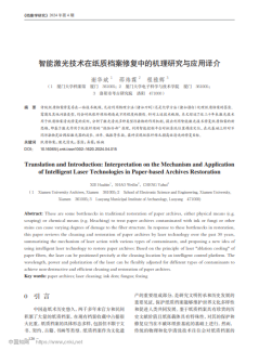 该文章从激光清洗作用机制上分析了激光清洗修复纸质档案的优势与可行性,明确材料和激光参数是影响激光清洗效率的重要参数,提出针对不同污染物,通过调试合适的激光参数,如脉冲持续时间、能量密度和波长等,利用智能操控平台精确控制激光清洗的位置、时间和扫描方式,实现纸张纤维无损高效清洗的智能化方式,为纸质档案修复提供了新思路。