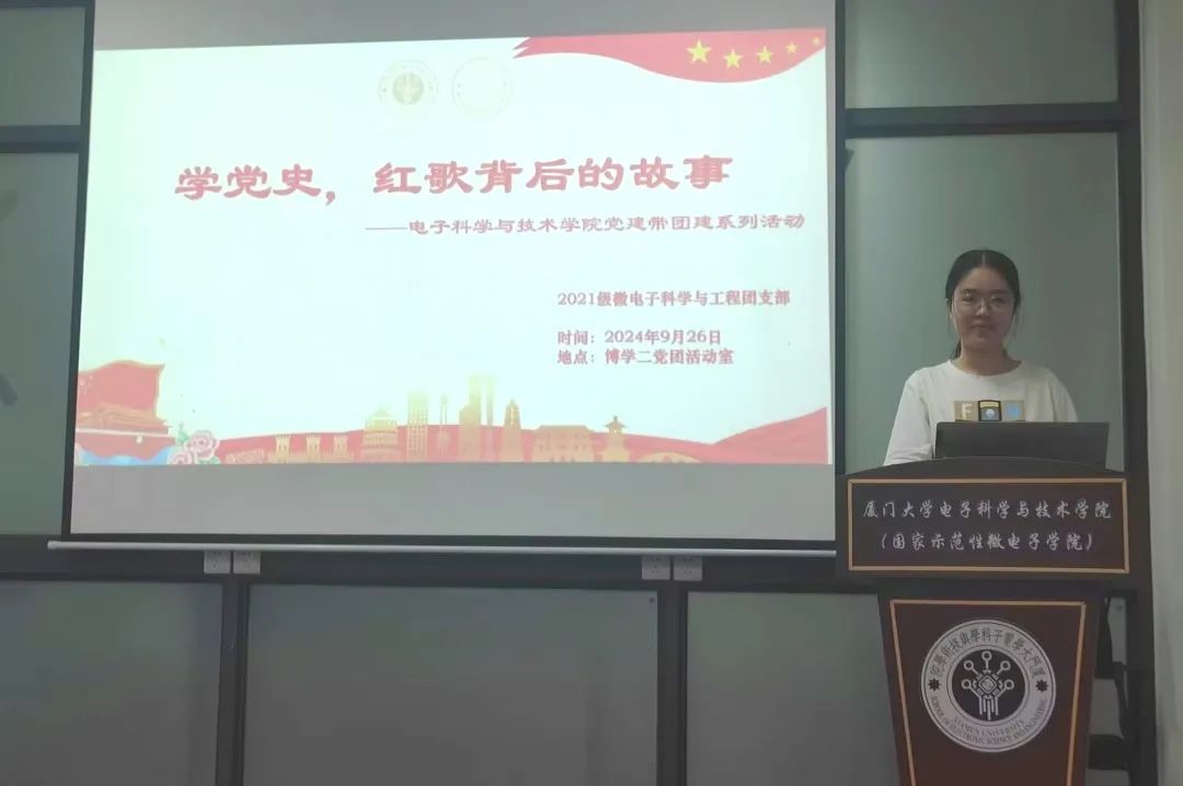 为了响应习近平总书记对于传承红色基因的号召、弘扬红色歌曲文化的当代价值、锻造新的时代精神,学院本科生党支部开展“芯青年 心向党·党史微课”党建带团建系列理论学习。9月26日,活动在博学二一站式共享空间举办,学院本科生党支部部分党员及2021级微电子科学与工程团支部参与本次学习。