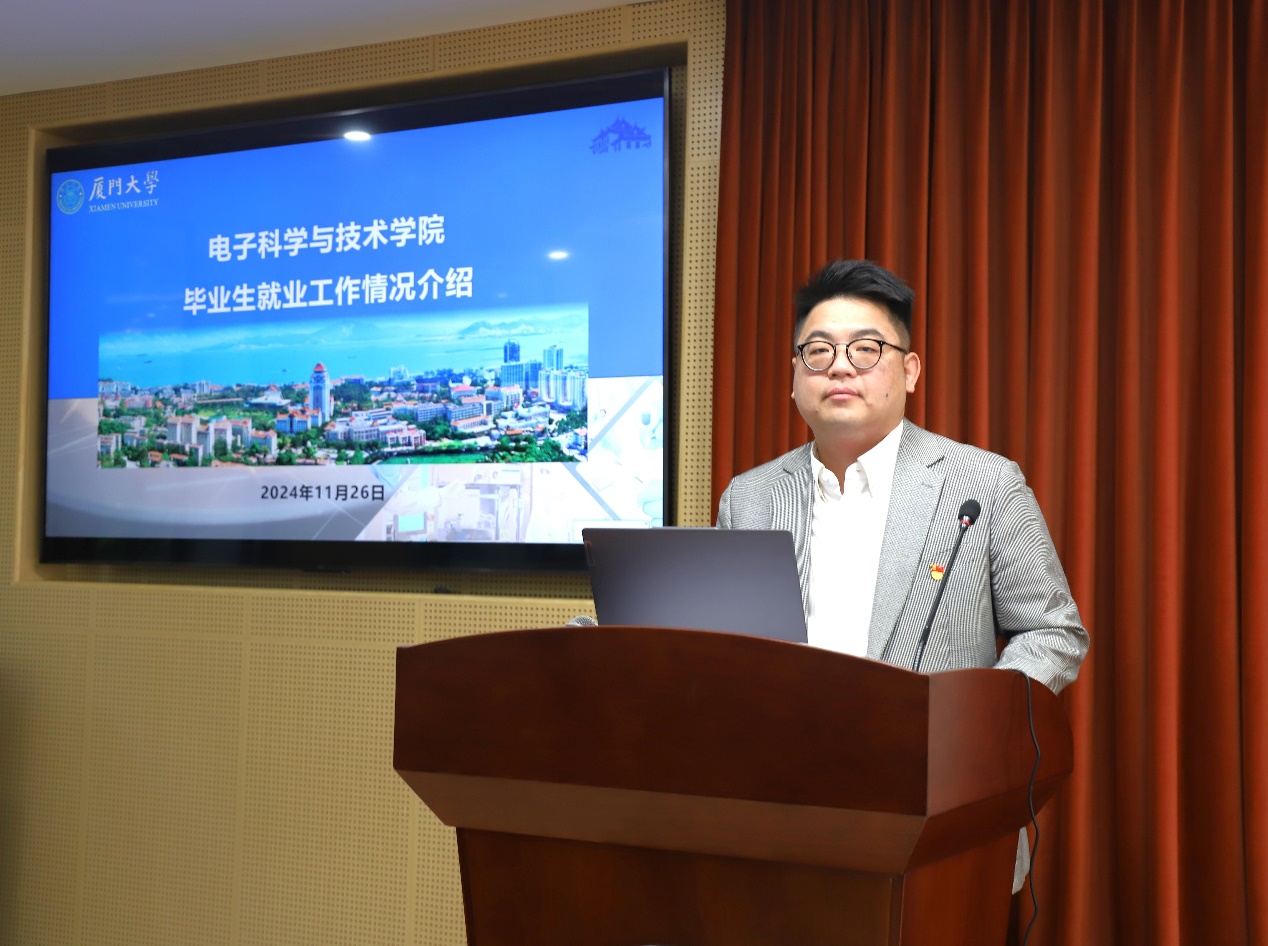 胡凡就厦门大学电子科学与技术学院毕业生就业工作情况作了详细汇报。学院坚持全员参与、精准就业导航的工作思路,通过整合全方位资源拓宽就业渠道、强化全过程就业指导帮扶、联动各方资源开拓市场化岗位、加大学生就业引导和就业教育等多项举措并进,切实提升学生就业竞争力。