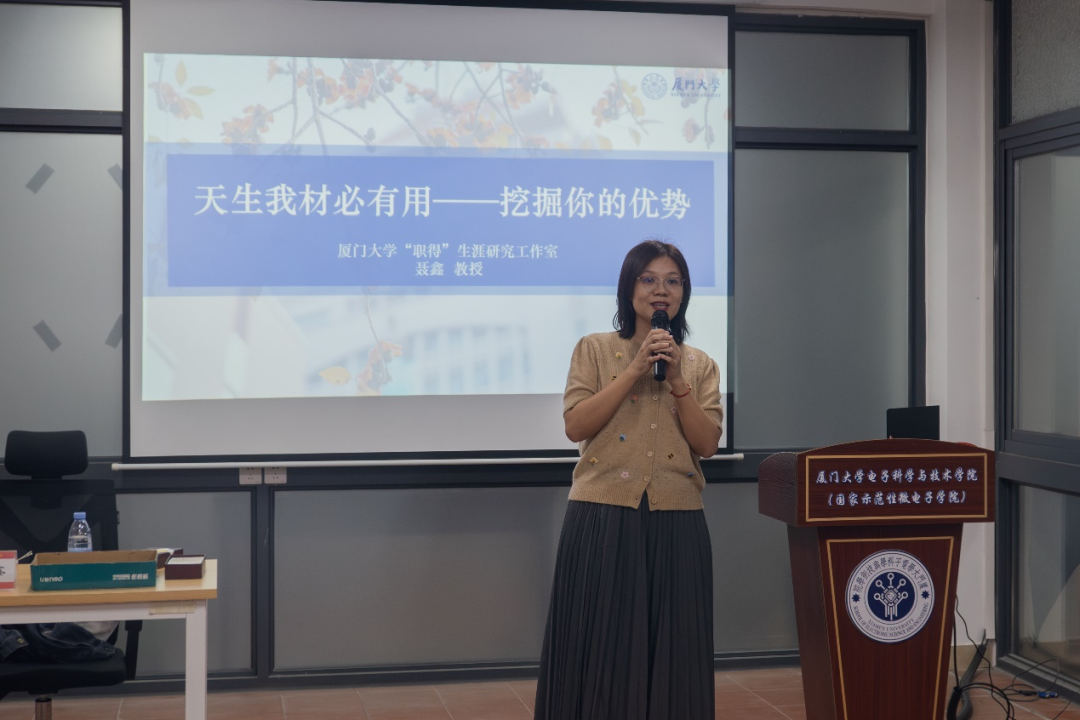 为帮助学生发掘自身优势,尽早明确职业发展方向,鼓励学生对于自我进行探索,电子科学与技术学院联合厦门大学“职得”生涯研究工作室,于11月25日在博学二一站式共享空间举办了一场心理讲座。讲座由厦门大学心理咨询中心兼职咨询师、化学化工学院教授聂鑫以“天生我材必有用——挖掘你的优势”为主题展开。活动由学院党委副书记林蕊主持。