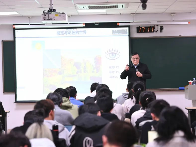 厦门大学校友会电子分会理事长李希龙,电子科学与技术学院党委书记石慧霞,院长陈忠,教师代表李琳,来自物理学、化学、哲学、法学、经济学等29个专业的80名学生线下听讲,翔安校区70多名学生线上同步听课。