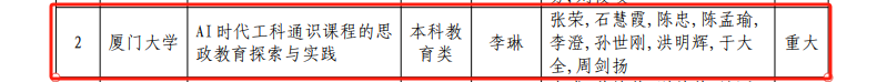 《芯片世界中的创新启蒙》通识课特邀院士、行业知名专家、产业领军人物、校友等作为教师团队,两轮选课覆盖了全校各学院同学,是电子学院积极探索思政教育与工科通识课程深度融合,将芯片技术的创新发展与课程思政相结合的一次有益尝试。相关项目《AI 时代工科通识课程的思政教育探索与实践》入选2024年福建省本科高校教育教学研究项目立项名单。