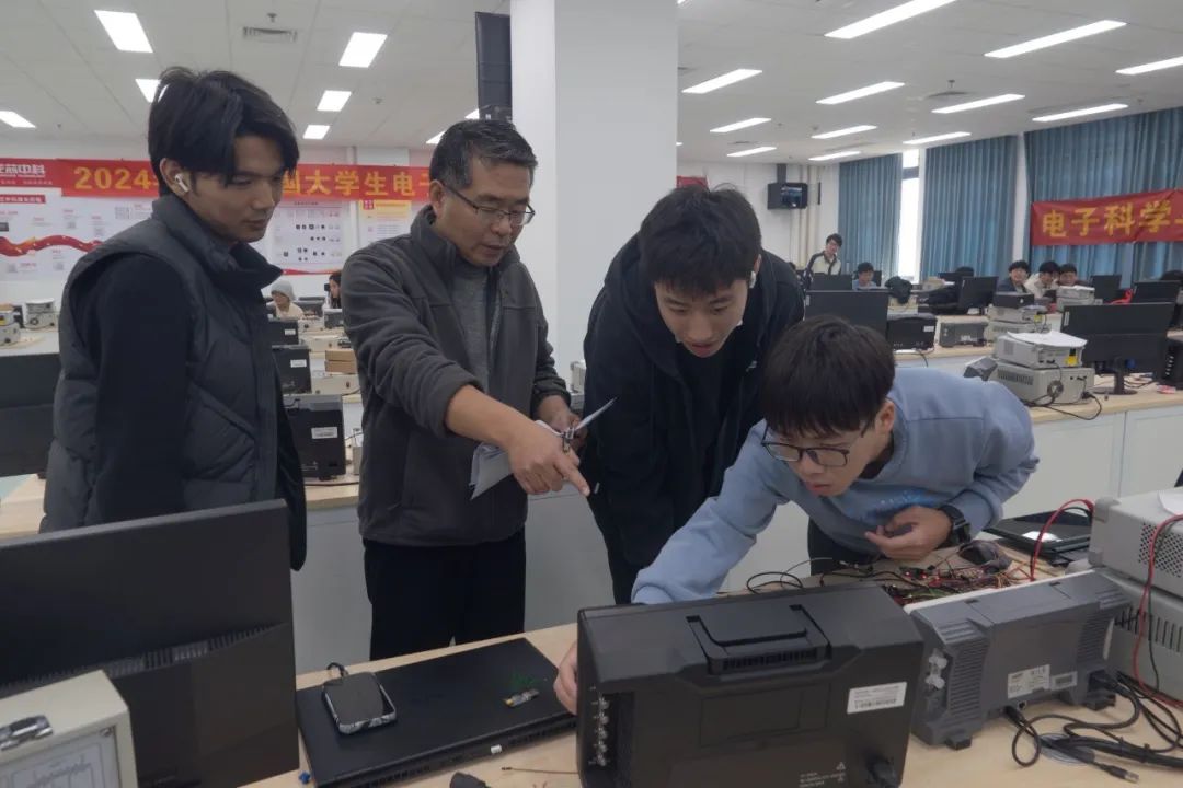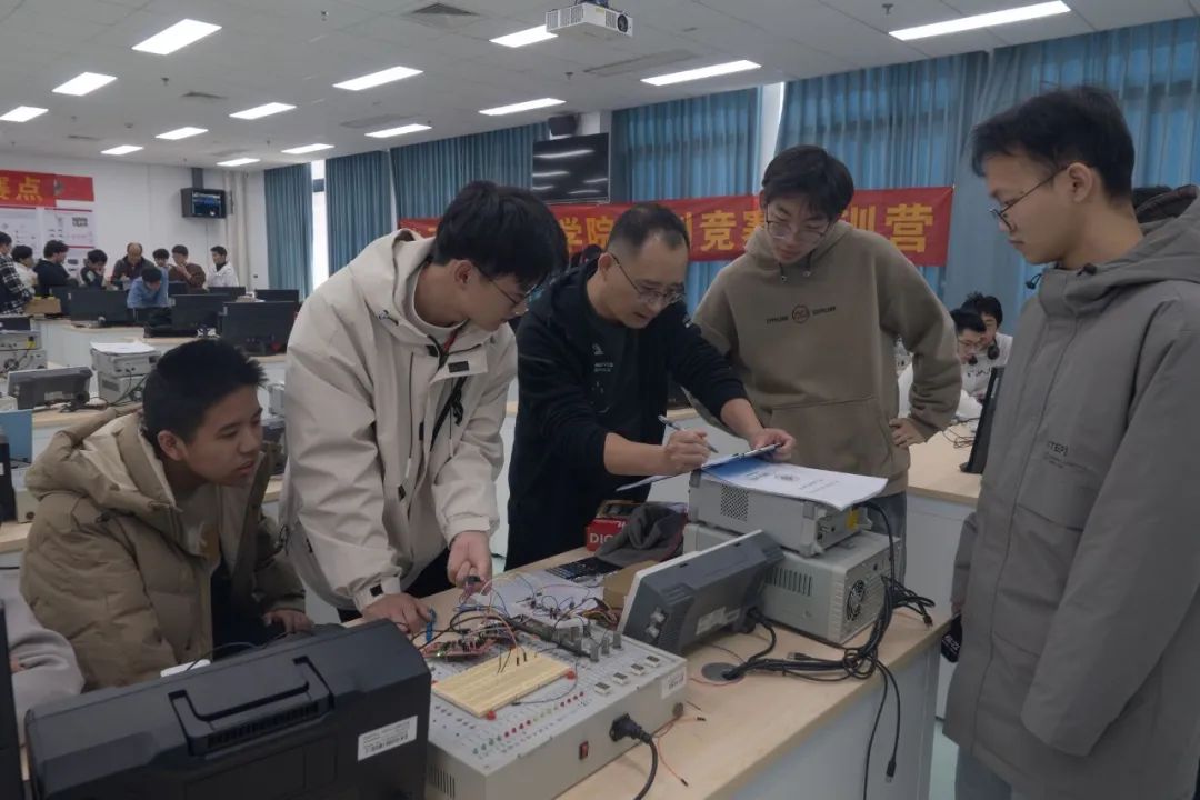 期末周结束,新工科大楼303、305实验室仍灯火通明、人头攒动。经历了前两轮选拔,同学们对选题方向有了较为准确的定位。在学院教学示范中心老师们的指导下,这些队伍顺利完成了2024年10月中旬的选题和11月底的中期考核,并准备了较完备的电子器材,为此次冬令营的顺利进行提供了保障。