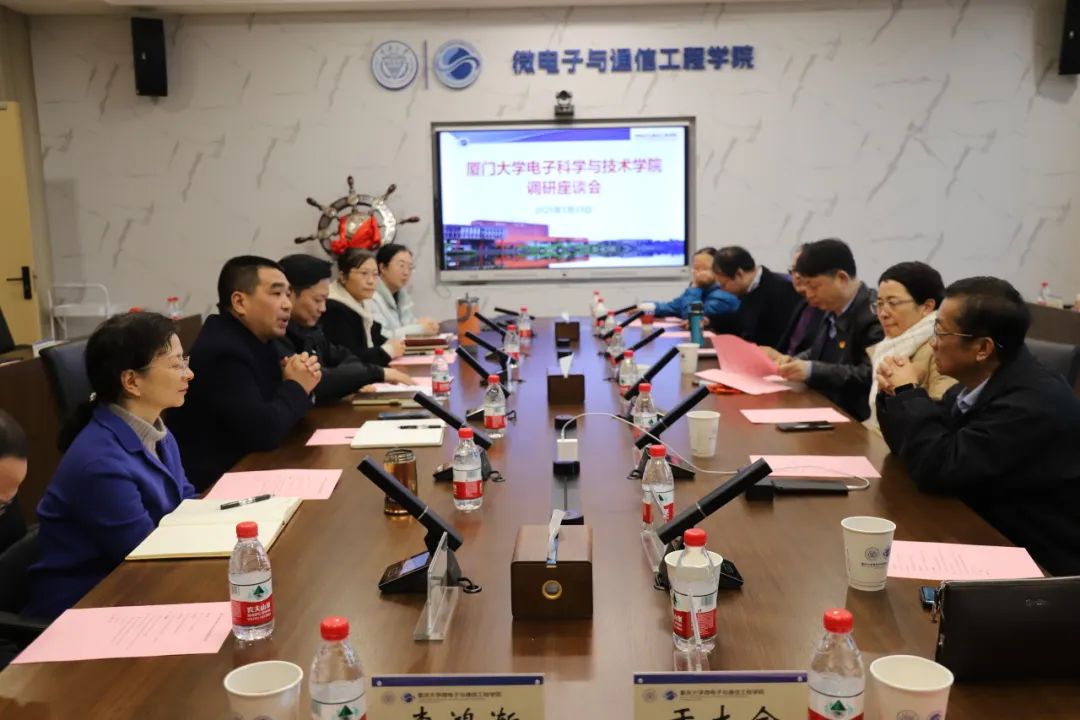 1月14下午,一行人赴重庆大学微电子与通信工程学院调研。微电子与通信工程学院党委书记周喜川、院长谭晓衡等有关领导、教师代表参加活动。