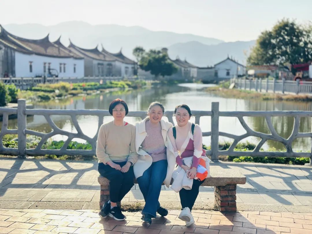村中,老师们围坐在一起,细细品味起独具特色的茶点组合。欢声笑语此起彼伏,大家你一言我一语,交流着工作中的心得体会,分享着各自旅途中的所思所感、所见所悟,温馨美好的画面恰似一幅徐徐展开的绝美画卷,定格在埭美村的这方天地间。