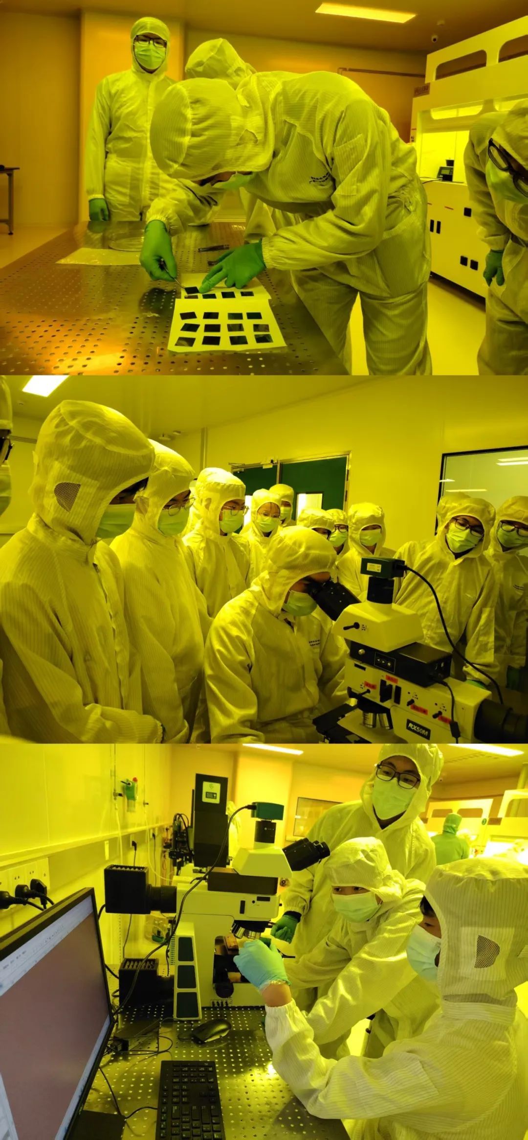 冬令营期间,营员们实地参访了厦门大学国家集成电路产教融合创新平台,近距离观察了光刻机这一尖端设备的运行过程,切身感受现代半导体工业的核心制造工艺。在学院专业老师的指导下,营员们学习光刻技术的基本原理,并参与到制作光刻芯片中。