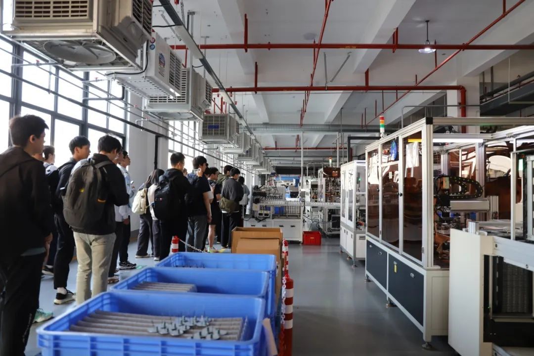在立仓六楼自动化车间,师生们近距离观看了电子节能灯的产业化生产流程,从精密元件贴装到成品封装检测,在全自动输送的生产线上,不同生产线间的相互配合,高度集成的智能化生产体系展现出显著技术优势。师生们纷纷表示大开眼界,充分感受到企业在智能制造领域的硬核实力。