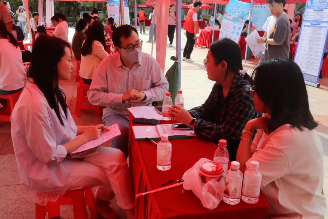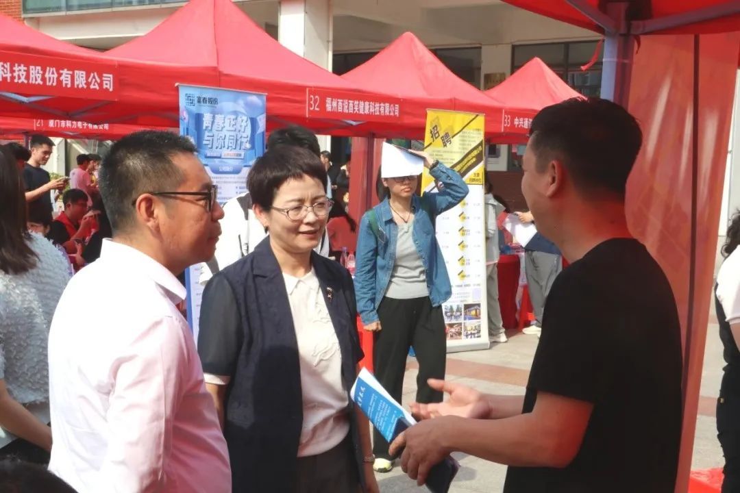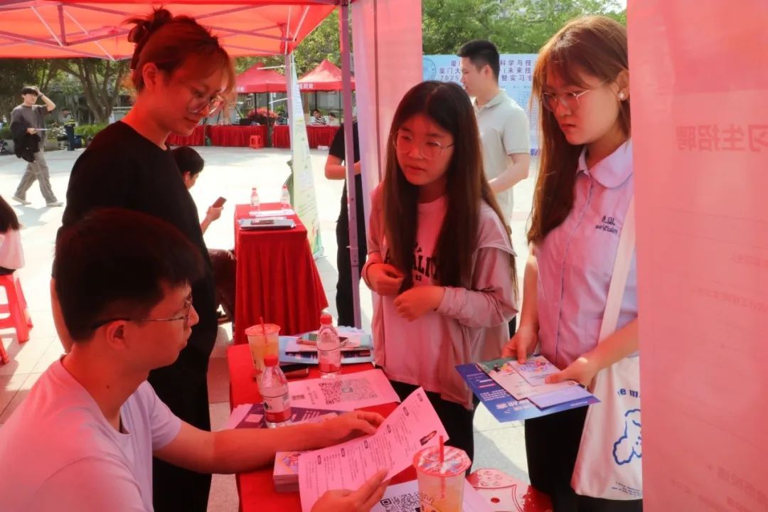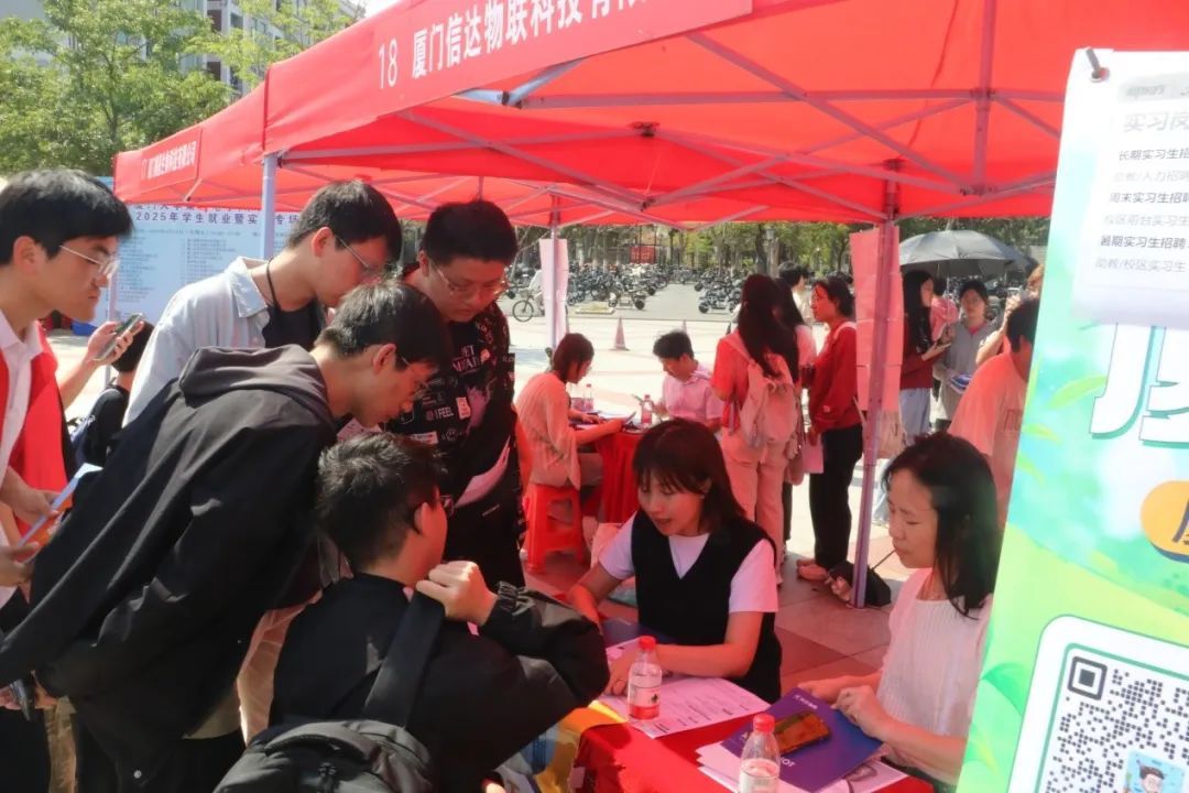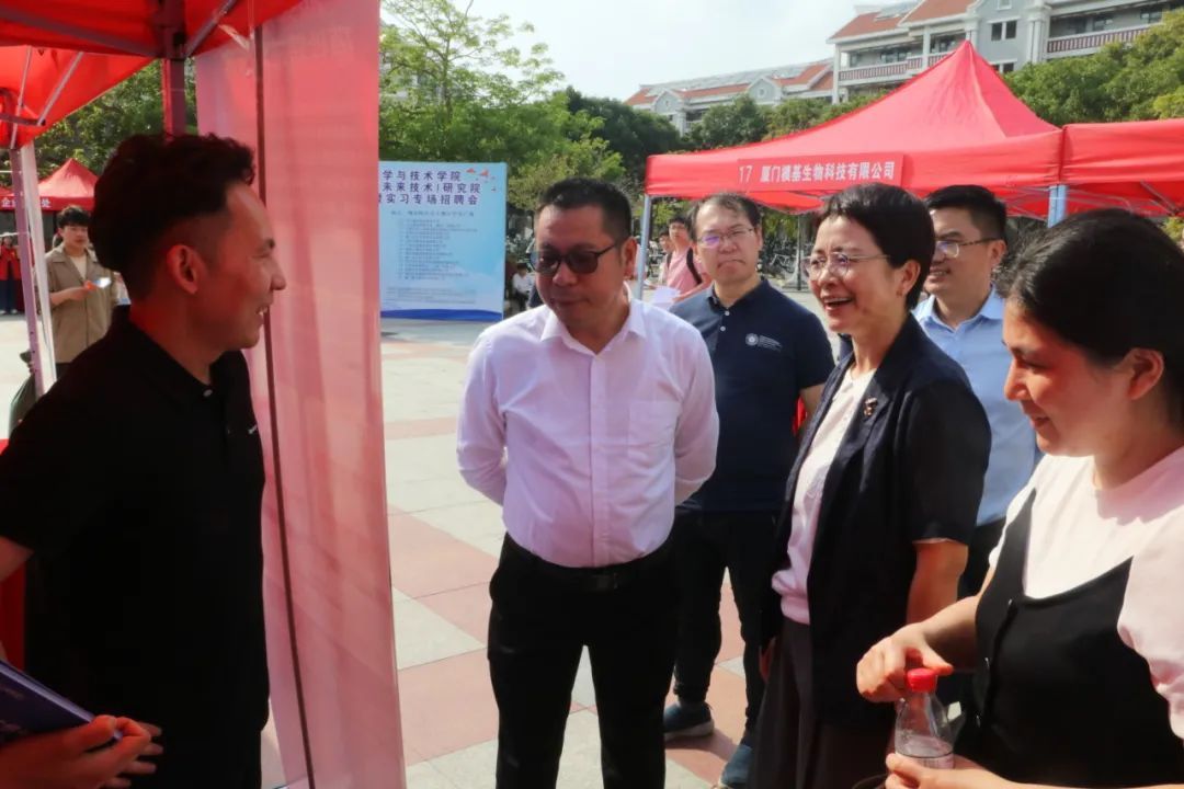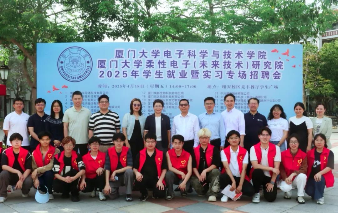 4月18日,厦门大学电子科学与技术学院&柔性电子(未来技术)研究院2025年学生就业暨实习专场招聘会在翔安校区竞丰餐厅学生广场成功举办。本次招聘会吸引了来自厦门、合肥、无锡等地的近50家企业参与,为2025届和2026届毕业生提供了800余个就业、实习岗位。翔安校区管委会副主任刘俊杰,学院党委书记石慧霞,翔安校区学生办主任林明华,学院副院长李澄,学院院党委副书记林蕊、韩海雄等领导老师莅临指导,与企业代表和学生亲切交流。