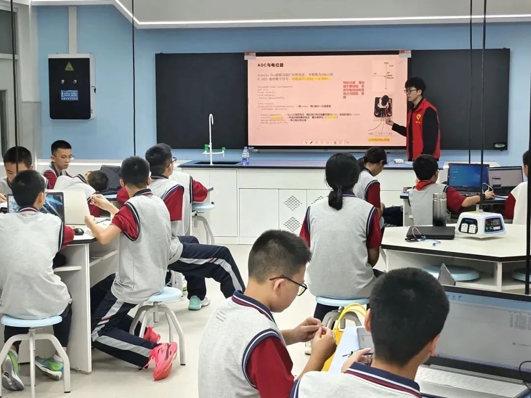 经过课程试点和优化升级后,团队依据课程目的的性质分为普及课、社团课和集训课。普及课面向全体学生,同学们可在40分钟的课程里学习到简单生动的编程知识;社团课则为小班,所学的内容更为深入,以电子知识科普为核心,扩展普及Arduino等开发板、物联网技术和科创作品制作;集训课针对参加比赛的学生,进行赛前集训,围绕比赛内容进行专项训练。