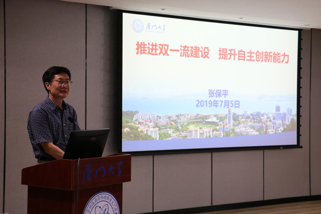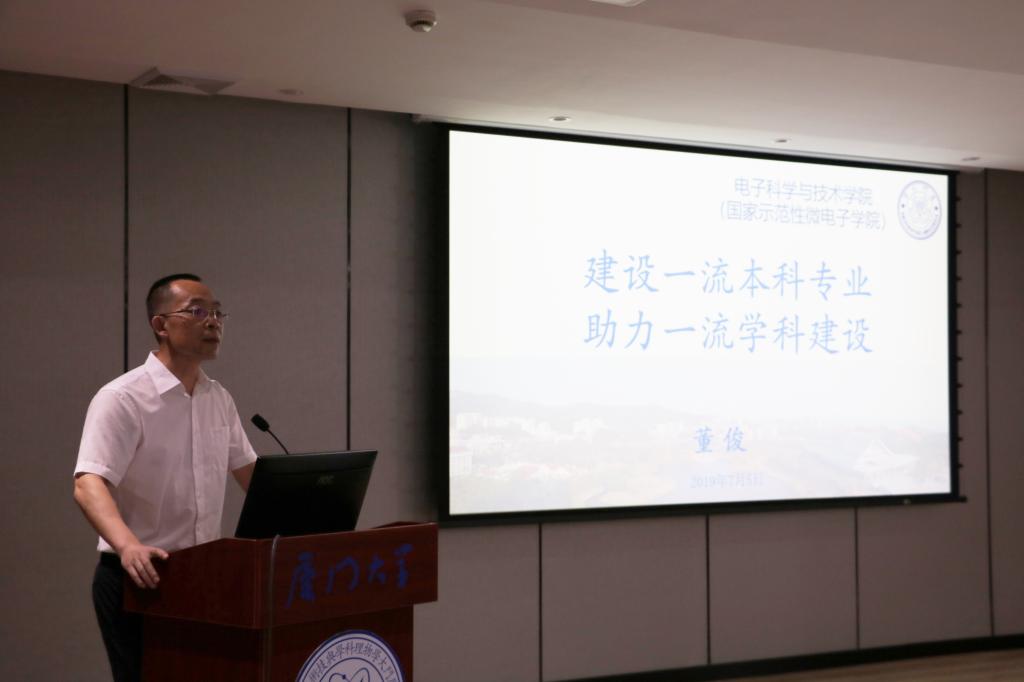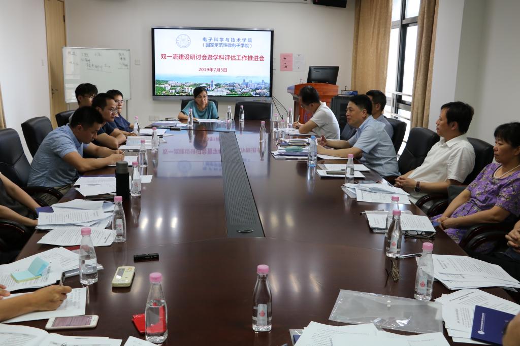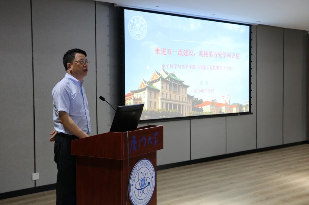 7月5日,电子科学与技术学院(国家示范性微电子学院)2019年“双一流”建设暨学科评估工作推进会在物理大楼552报告厅举行。院党委吴国瑛书记、主持工作副院长陈忠教授、副院长董俊教授、副院长张保平教授、院党委唐拥华副书记出席会议,学院专业教师、工程技术人员、党政管理干部以及离退休教职工代表参加了会议,大会由院党委方银水副书记主持。