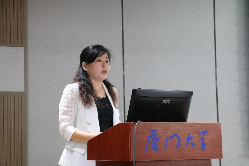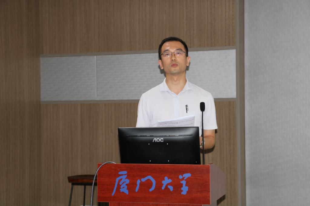 在新教工入职仪式上,吴国瑛、陈忠为教授于大全、副教授李澄、党政管理干部林珊珊三位新入职教工佩戴校徽,赠送书籍《我的厦大老师》。吴国瑛勉励新入职教工要认真学习领会厦大的“四种精神”,做教书育人的表率。之后,吴国瑛宣读了学院2019年青年教师教学技能比赛获奖名单,董俊、张保平、工会主席沈桂平副教授为一等奖获得者郑志威,二等奖获得者车凯军副教授、龙浩助理教授颁奖。最后,陈忠发表总结讲话,他号召全体教职员工坚持党的全面领导、不忘初心,增强学科建设的使命感和责任感;坚持内涵发展、牢记使命,扎实推进“双一流”建设;坚持凝心聚力、务实笃行,共创学院美好明天。