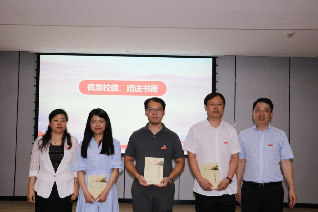 吴国瑛、陈忠为新入职教工佩戴校徽并赠送书籍