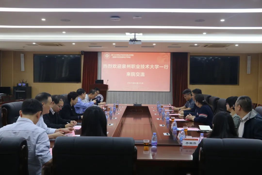 4月25日上午,泉州职业技术大学党委副书记、校长吴滨如,副校长张建军,校长助理、教务处处长苏康敏,党委宣传部部长杨颖聪,工学院副院长蔡海毅等一行人来我院交流调研。我院党委书记石慧霞,院长陈忠、副院长李澄等参加交流活动。