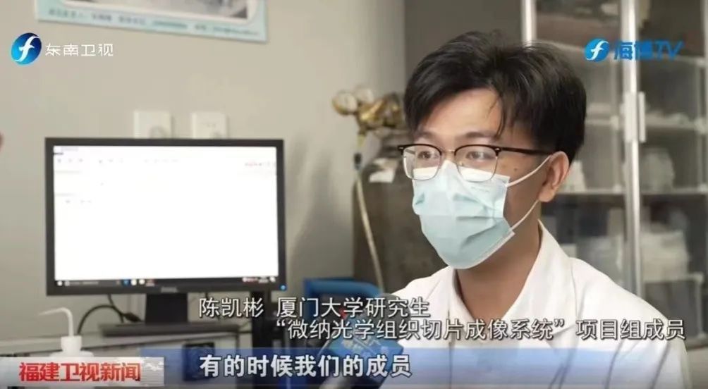 团队于2020年起在厦门大学朱锦锋课题组实验室和集成电路平台开始研究,最初以“挑战杯”全国大学生课外学术科技作品竞赛为开始,由黄余前、陈凯彬等同学组成,横跨了电子、医学、计算机三大学科。经过多个实验室的共同努力,团队于2023年研发出微纳光学组织切片成像系统。提及项目初心,陈凯彬坦言“我们团队的项目并不局限于自己的专业,在发展专业作品的同时我们也关注社会热点,拥有宽阔的视野,将自己的所学与社会热点相结合,为解决癌症组织切片检测的痛点下苦功”。在朱锦锋教授的带领下,团队从最初的研一小透明团队,实现了从0到1的过程。