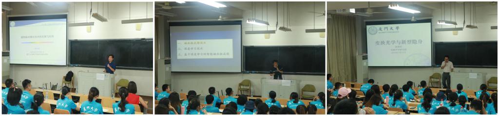 13日下午,学院在海韵教学楼104举行了三场名师讲座。电子工程系罗正钱教授作了题为“超短脉冲激光”的讲座,描绘了超短波激光的大好发展前景。电子科学系蔡聪波教授就磁共振成像与深度学习的结合作了详细讲述,展现了深度学习技术对医学成像技术识别的突破性贡献。电磁声学研究院陈焕阳教授为同学们讲解了光学材料和隐形技术,他列举了自然界各种神奇的动物皮肤结构产生的不同光学现象,为同学们打开了一扇神奇的光学世界大门。