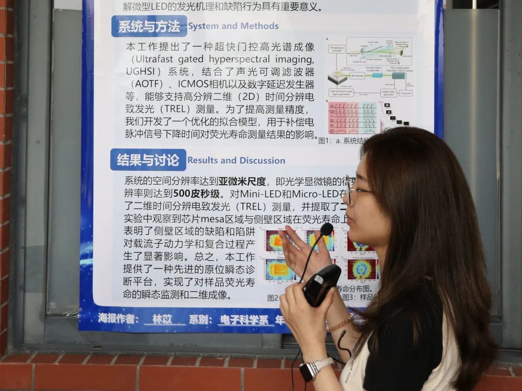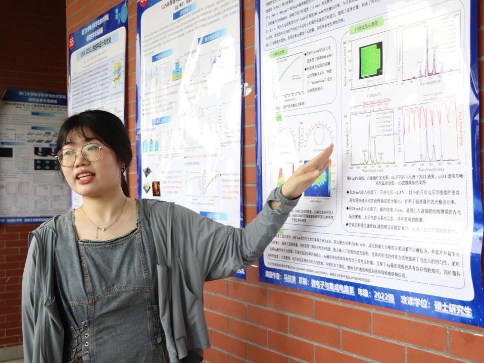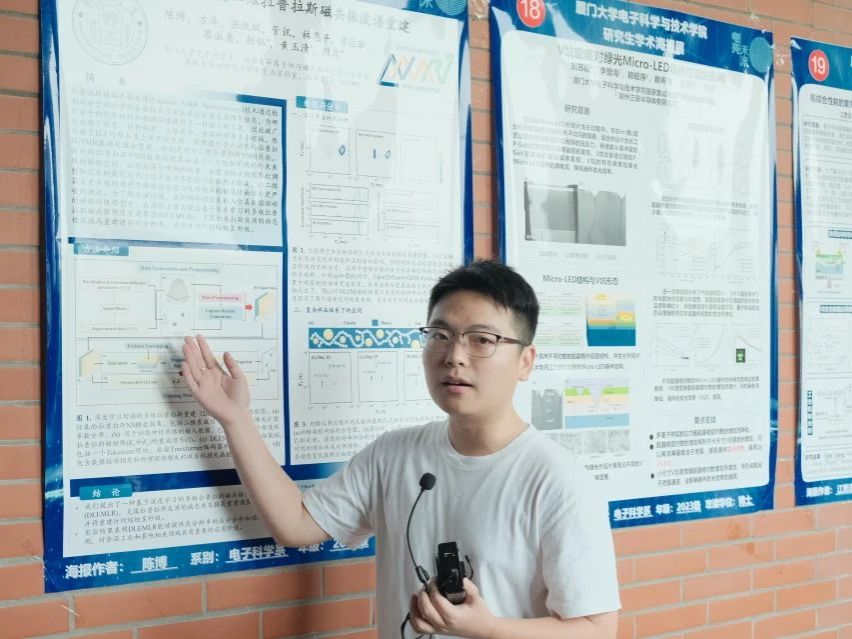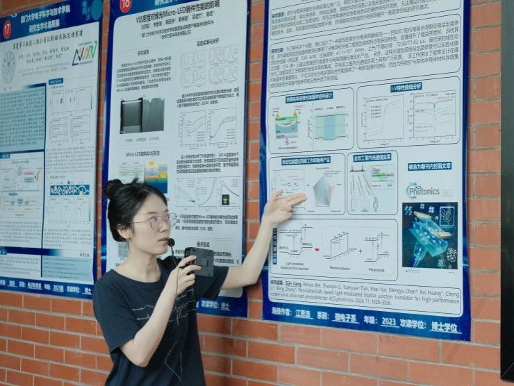 “学术快闪”三分钟海报路演、“专家会诊”深度研讨、“灵感交换”跨学科头脑风暴,60份参展作品涵盖微电子学、电磁场理论、光电技术等多个研究方向。参展者通过图文并茂的视觉化呈现,将复杂理论转化为具象化学术语言,活动现场学术氛围持续升温。