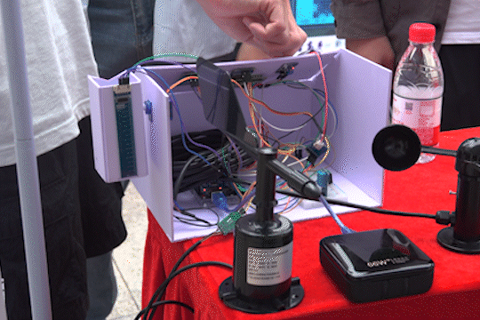 喂猫神器、激光雕刻机、乒乓球自动发球机等同台竞技。大一新生在活动现场热情讲解创作思路,围观同学热烈互动,科技不再高冷,知识变得触手可玩。