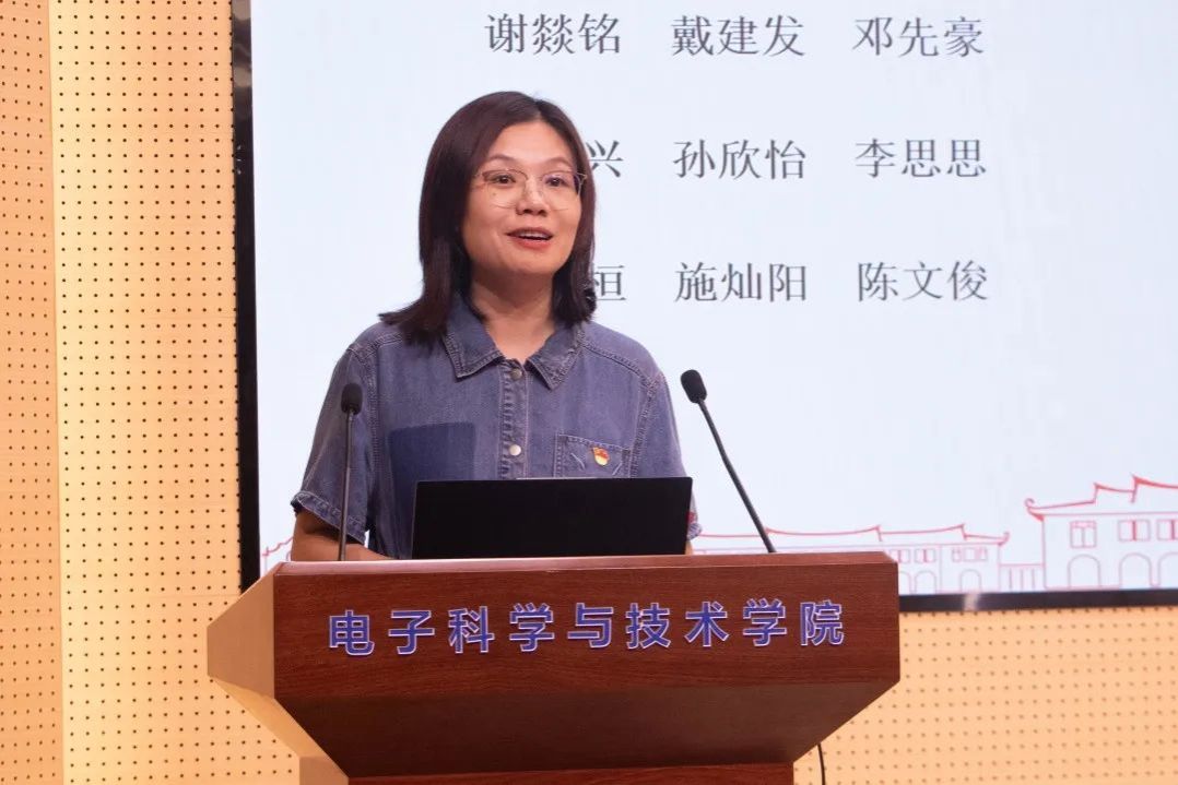 阮小真对耐心负责的指导老师们表示感谢,对取得佳绩的同学表示祝贺。她向同学们介绍了快快网络在互联网的探索和发展历程、企业愿景和企业使命。她希望今后能继续与电子学院开展合作,以党建促科研,双向赋能,推动双方在人才培养、技术创新、成果转化等领域的深度融合。