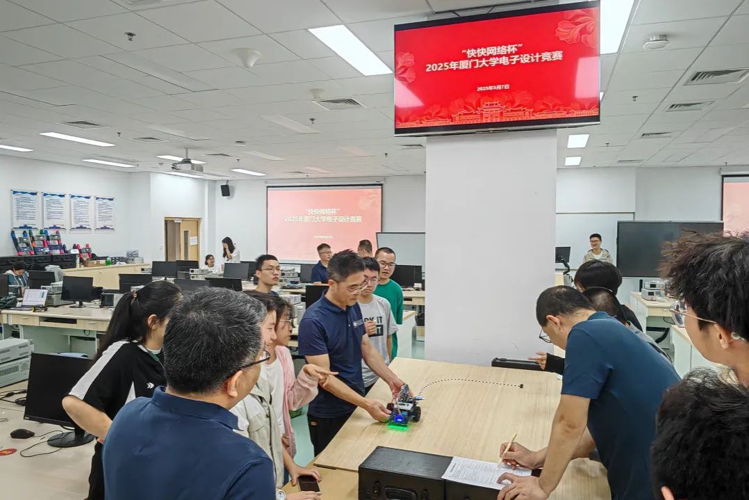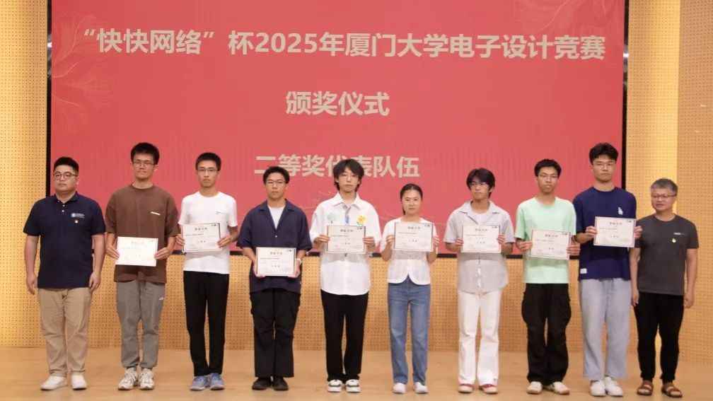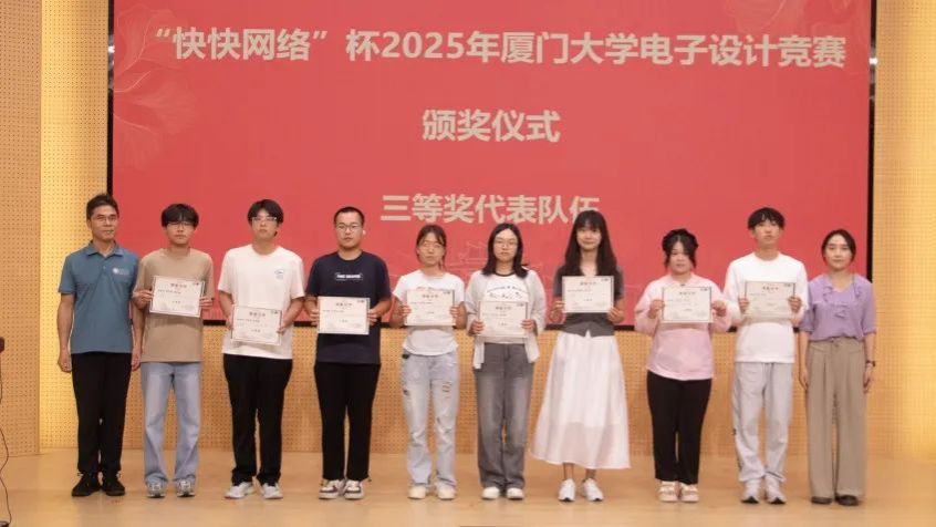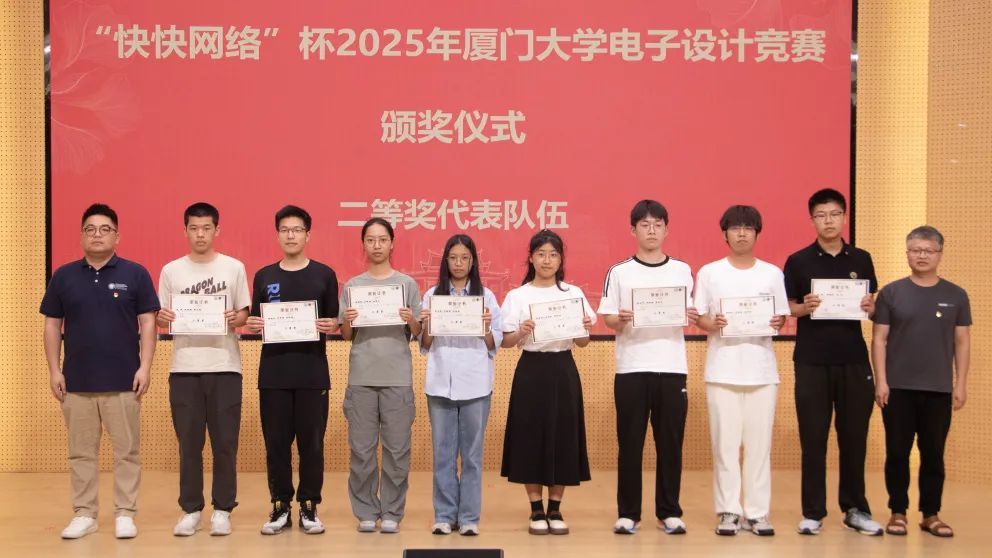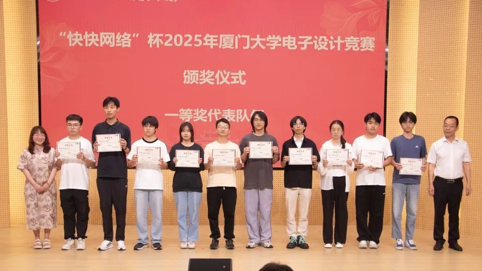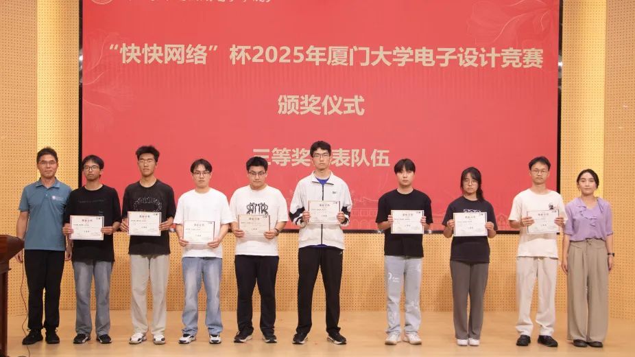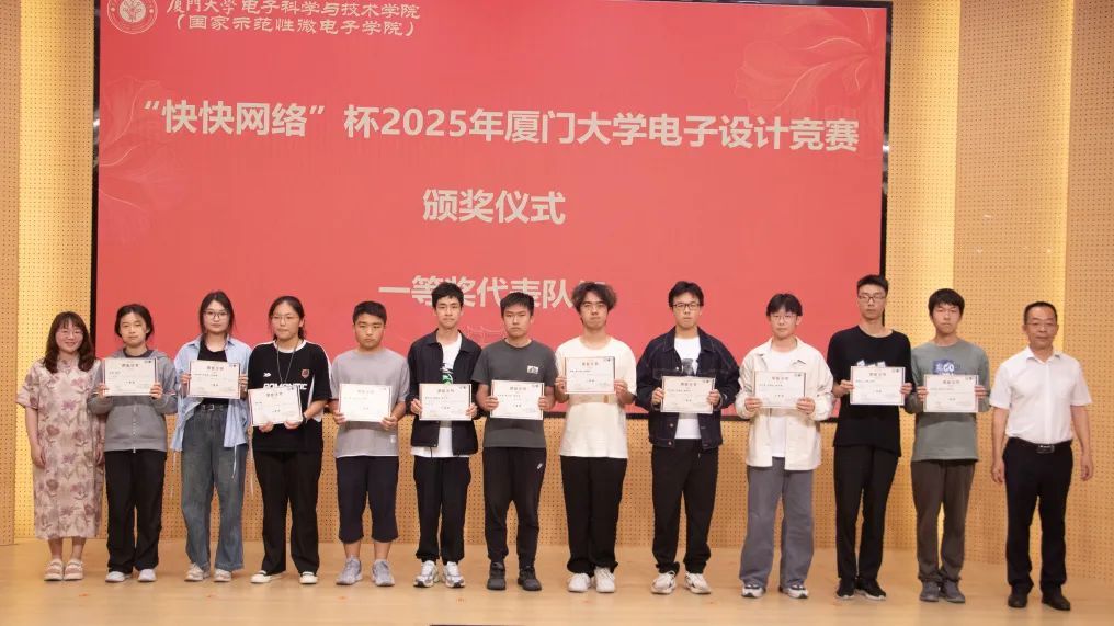 5月22日,“快快网络”杯2025年厦门大学电子设计竞赛颁奖典礼在南存钿楼C栋报告厅举办。厦门快快网络科技有限公司团委书记、公共事务经理阮小真,学院副院长董俊,学院党委副书记林蕊,学院团委书记胡凡,实验教学示范中心主任陈华宾,学院工程师陈建发,辅导员林燕红,党政辅导员闵舒媛及200余名参赛同学参加活动。