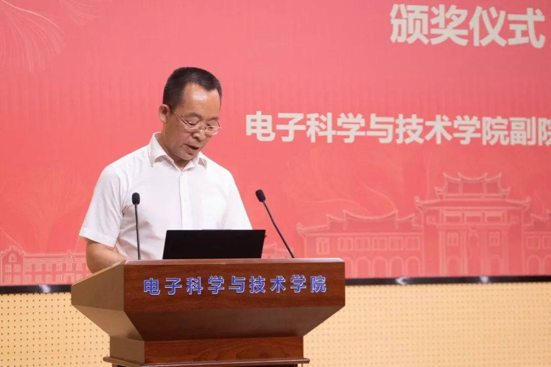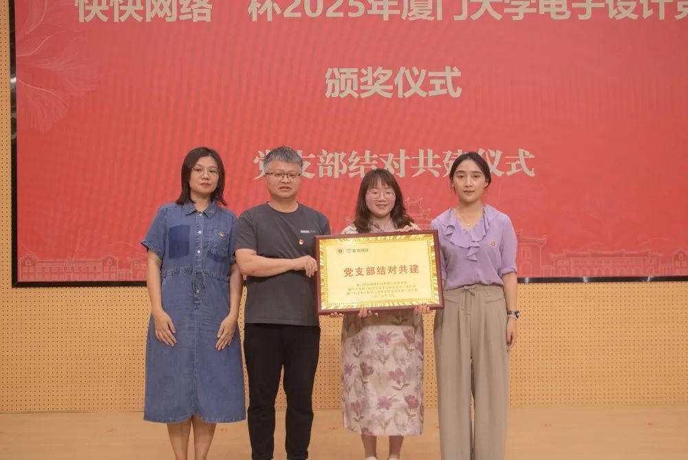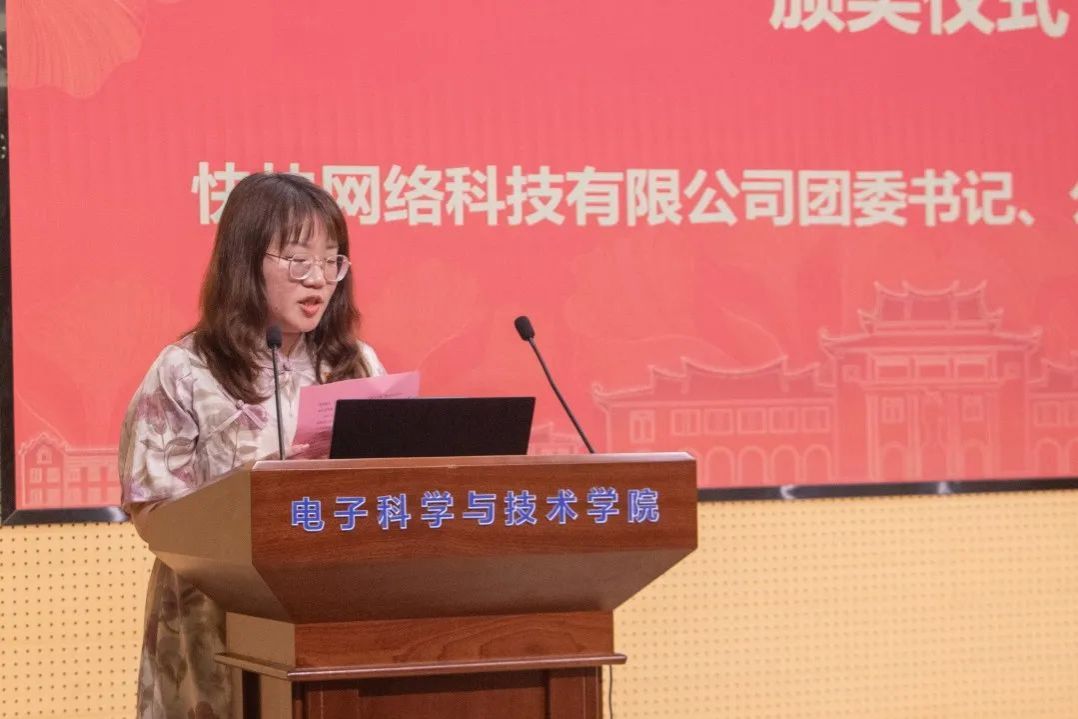 林蕊代表学院为厦门快快网络科技有限公司党支部、电子科学与技术学院实验中心党支部、本科生第一党支部三方共建授牌。