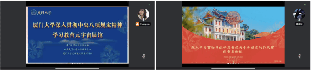 党规党纪学生研习社党支部书记张玉洁向党员们介绍了厦门大学深入贯彻中央八项规定精神学习教育元宇宙展馆。该展馆兼具教学展览与线上会议功能,围绕学习教育主线,融合先进典型、反面警示案例,以及 “案说八规” 微视频、“明纪正行” 微党课等内容,形式丰富多元。主展厅的投屏功能,能让党员操控虚拟人物开展学习活动,实现 “线上会场” 互动。随后,党员们扫码进入展馆,借助虚拟现实技术开启沉浸式学习。在虚拟空间里,他们回顾中央八项规定精神的发展历程,通过丰富的图文资料、案例剖析和理论解读,全方位、立体化地理解其内涵与意义。新颖的学习形式打破时空限制,让学习更具趣味性与实效性。党员们纷纷表示,这种创新模式不仅增添了学习乐趣,更深化了对中央八项规定精神的理解与记忆,让纪律意识更加入脑入心。