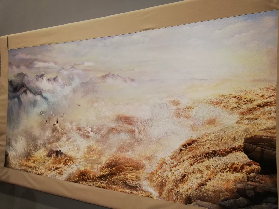 展览让实践队感受到了刺绣的瑰丽华美:活泼生动的老虎,遗世独立的梅兰竹菊,浩汤汤的黄河,有盛然绽放的牡丹,吞云吐雾的蛟龙,等等。精美绝伦的作品,无一不在显露着刺绣的底蕴。或许只有在亲身体会之后,才会有深刻的记忆。在震撼之下,实践队的成员更加重视本次的社会实践。