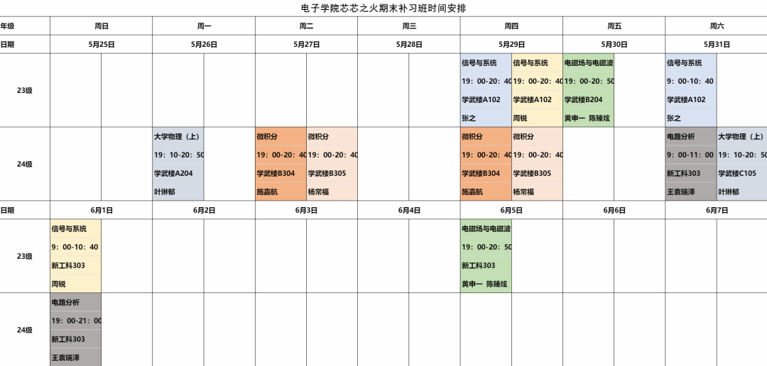在本次期末补习活动中,电子学院青年志愿者协会分年级分学科精准招募优秀学霸志愿者,实时跟进课程情况,收集同学反馈、打磨、优化补习内容,提升课堂教学质量。