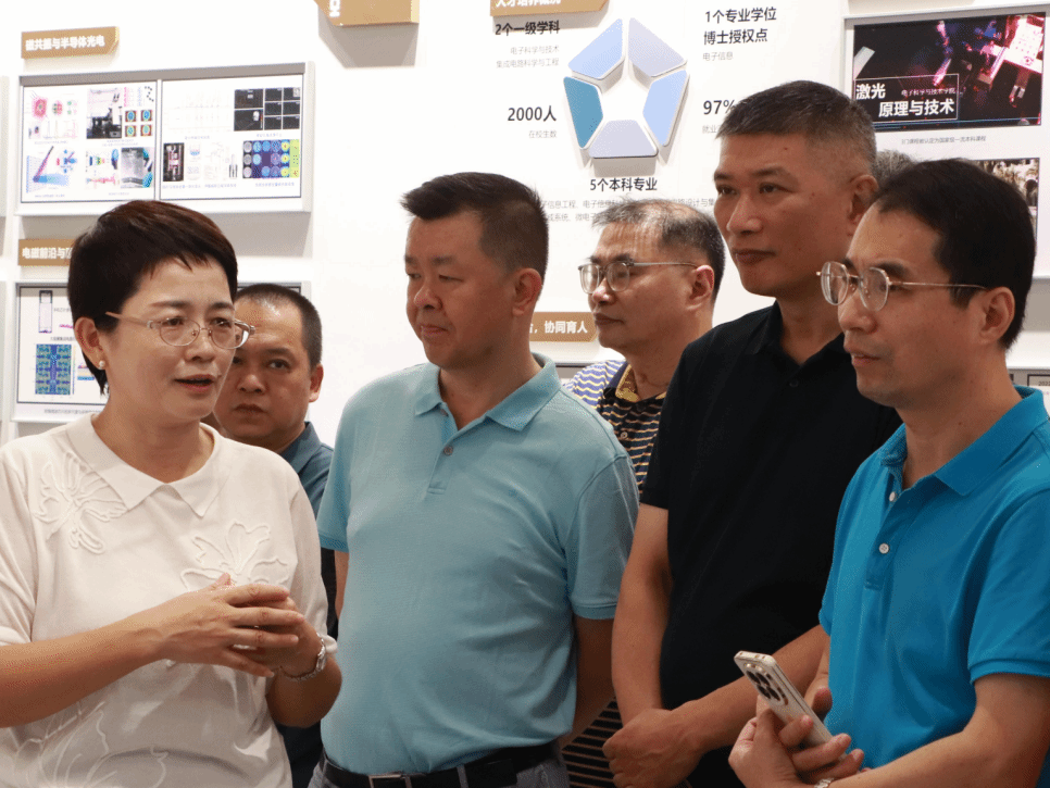在院党委书记石慧霞和院长陈忠的带领下,校友们参观了院史文化长廊、“党建+科普”驿站、国家集成电路产教融合创新平台等。参观过程中,石慧霞和陈忠向校友们详细介绍了学院的发展历程、党建工作成效、学科建设进展以及科研平台的运行情况。