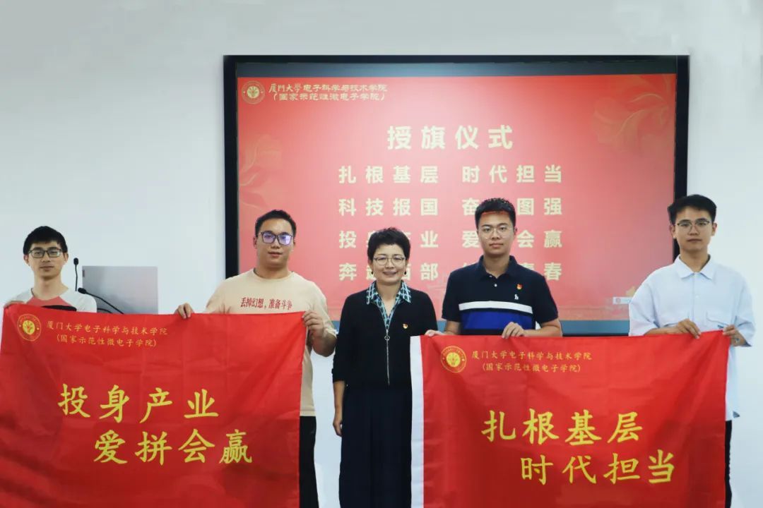 近日,学院“‘芯’火相传守信仰电子报国践初心”2025届赴西部、基层、国家重要行业就业毕业生出征仪式在南存钿楼A513会议室顺利举办。学院党委书记石慧霞,关工委副主任许惠英,电子科学系副系主任廖新勤,教师代表陈强,班主任代表董志鹏,毕业班辅导员及2025届毕业生代表、学生党员代表参加出征仪式。会议由党委副书记林蕊主持。