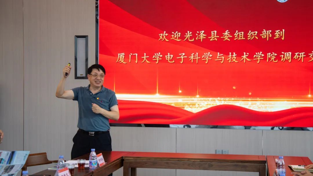 徐榕介绍近年来光泽县经济社会发展情况。她表示,近年来光泽县被评为全省经济发展 “十佳” 县(市),党建引领成果显著,形成了具有区域特色的产业体系,呈现出经济增长、社会稳定、民生改善的良好态势。厦门大学在人才输送和资源支持上给予了光泽县极大帮助,希望未来能与电子学院探索更多合作可能,借助高校科研力量和人才优势,推动光泽县的产业升级和创新发展。