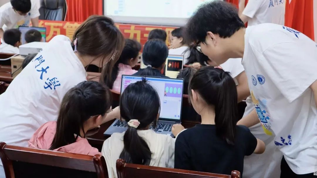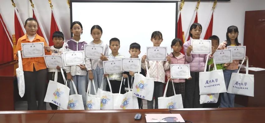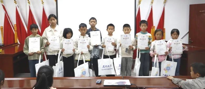 7月21日,为期七天的厦门大学“芯联万算·黔力无限”公益支教服务闭营仪式举行,全体实践队员与营员齐聚一堂。马利琴和营员代表分享了这段旅程中的感悟。实践队员们为营员颁发精心准备的优秀营员奖状和结业证书,见证营员的成长,承载“山海相连”的约定。播放精心剪辑的视频,定格下红色课堂的专注、蓝色编程课的雀跃、绿色美术课的灵动、运动会的拼搏等珍贵瞬间,引发众人共鸣。