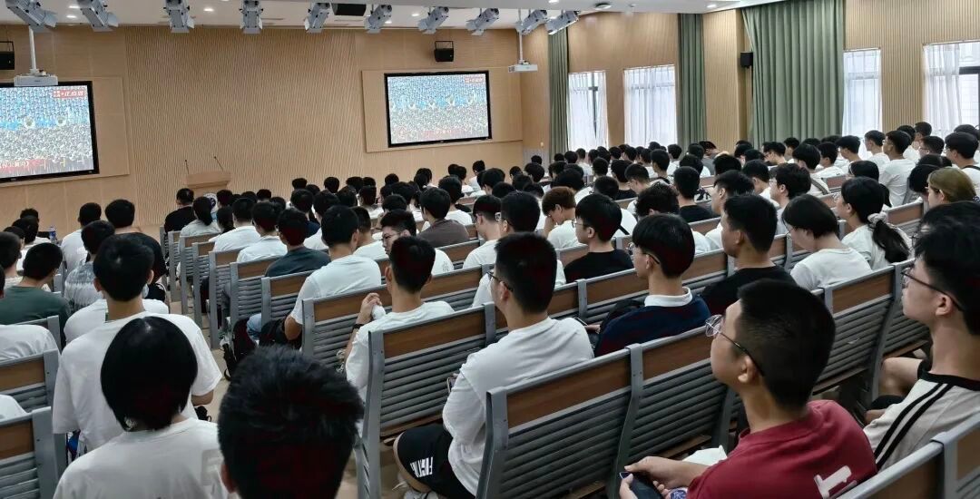 电子学院党委第一时间组织全院师生和部分校友,通过多种形式收看大会盛况,学习领会习近平总书记的重要讲话精神,弘扬伟大抗战精神,凝聚磅礴力量。