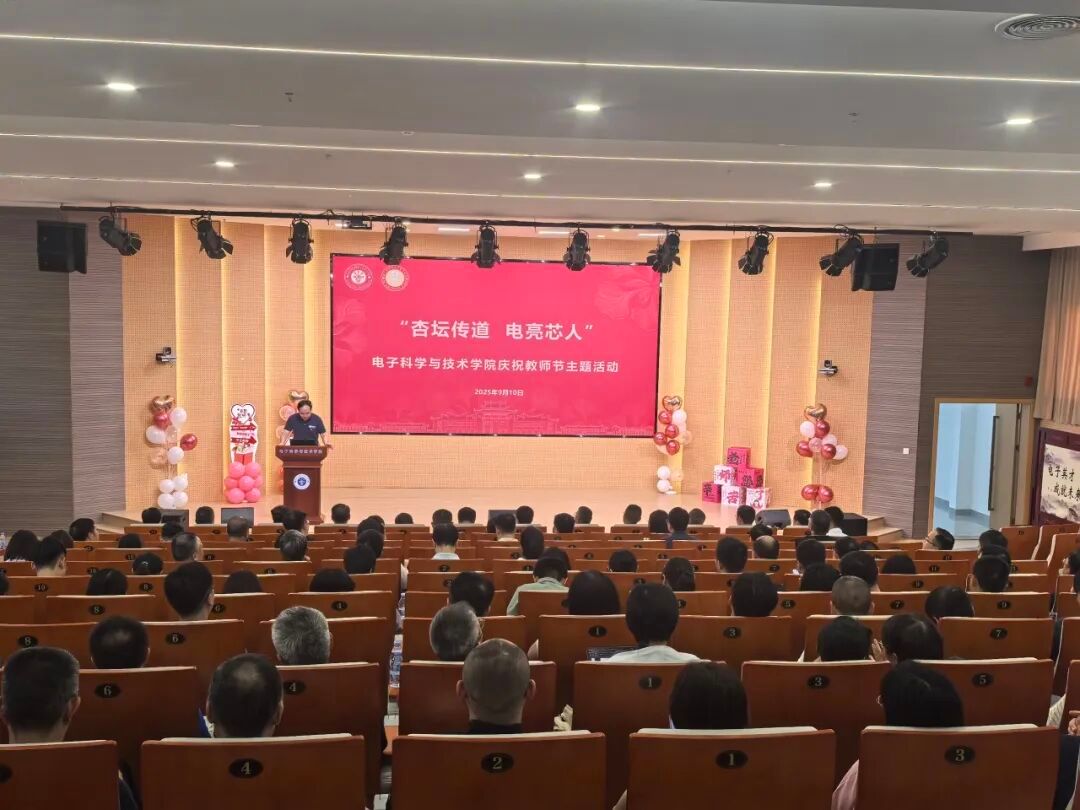 习近平总书记寄语广大教师:“今天的学生就是未来实现中华民族伟大复兴中国梦的主力军,广大教师就是打造这支中华民族‘梦之队’的筑梦人。”9月10日上午,值此全国第41个教师节之际,电子科学与技术学院以“杏坛传道 电亮芯人”为主题,在南存钿楼C401报告厅举办温情洋溢、其乐融融的教师节主题活动。国家级教学名师、厦门大学数学科学学院教授林亚南,厦门大学校友会电子分会理事长、厦门龙胜达照明电器有限公司董事长李希龙,厦门大学校友会电子分会秘书长李明凡,学院党委书记石慧霞,院长陈忠等出席活动。学院全体教职工、博士后和科研助理参加本次活动,活动由学院党委副书记韩海雄主持。