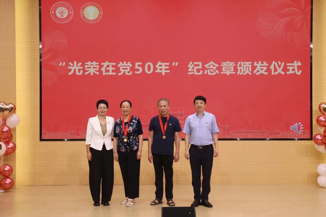 一个党员,一面旗帜。肖芬、谢廷贵两位老党员、老教师躬耕教坛,将半生岁月献给党和人民的教育事业,以知识点亮学子“芯”光,用关怀陪伴学生成长,对党的忠诚与教育的热忱,始终滚烫如初。值此特殊节日,两位老师迎来了“光荣在党50年”的荣光时刻。石慧霞、陈忠亲手为他们佩戴上纪念章,一枚小小的徽章,映照着两位老教师半个世纪的坚守与奉献,也承载着全院师生对他们的敬意与祝福。随后,谢廷贵发表了深情感言,他回顾了在党五十年的岁月征程,为自己能亲身参与并见证国家富强与民族振兴感到无比自豪,简单的话语里,满是岁月沉淀的温情与赤诚,让在场的每一个人都感受到了老一辈教育工作者的初心与担当。