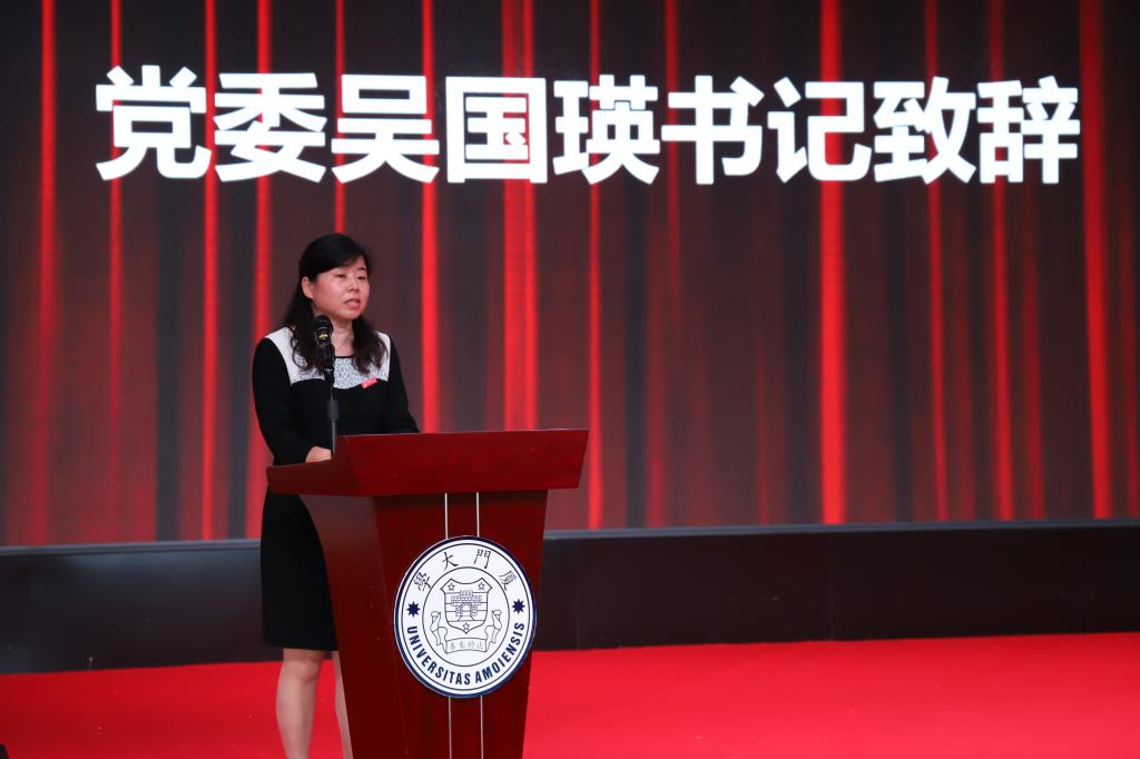 吴国瑛首先致辞。她介绍了学院概况及相关学科的历史沿革,描绘了学院发展前景,并用校主陈嘉庚先生“毁家办学”的教育精神和萨支唐院士“敢于创新”的科研精神,勉励新生要勤学好问、刻苦钻研,积极参与各项活动、多点开花。