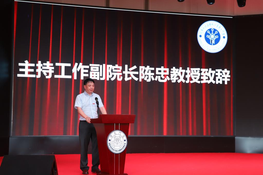 陈忠就学院办学、学生培养作了生动的讲解。他结合学院建设状况和学科发展背景,在学业规划、成长成才等方面给了新生指导。他鼓励同学们努力学习,积极参与“国家集成电路产教融合创新平台”建设,为解决国家“卡脖子”问题贡献力量。