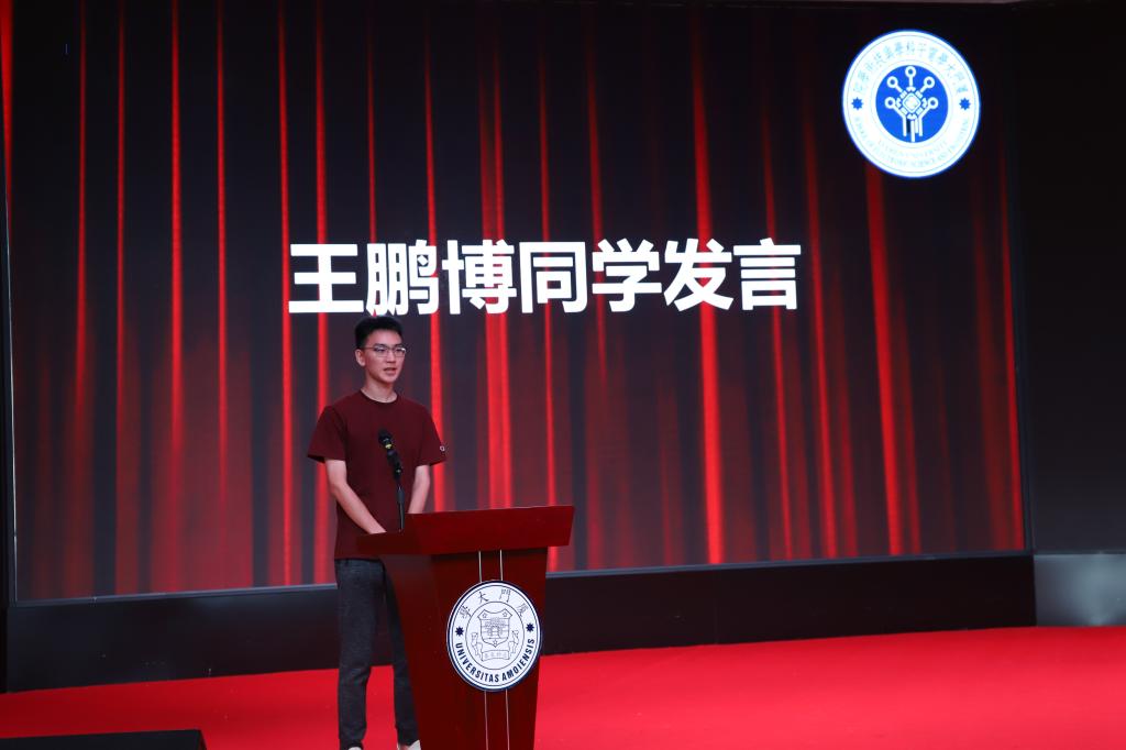 同为2019级新生,王鹏博表示,自己与其他同学一样,为能考入厦门大学感到庆幸。他以“自强不息,止于至善”的厦大校训与全体同学共勉,倡议同学们珍惜机会,心怀使命、敢于奋斗、勇担重任、激扬梦想,做新时代的追梦人。
