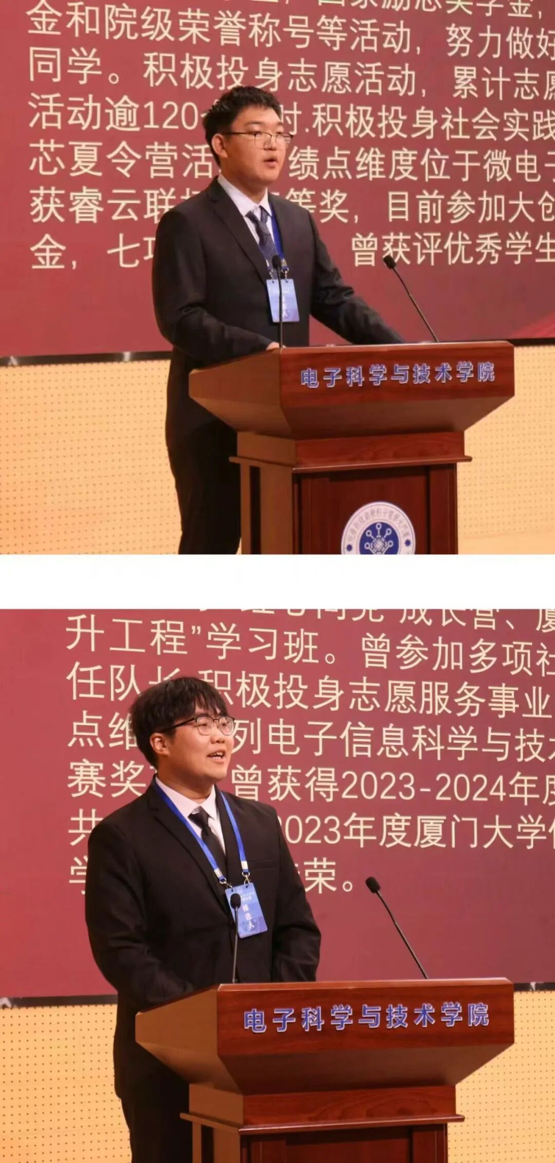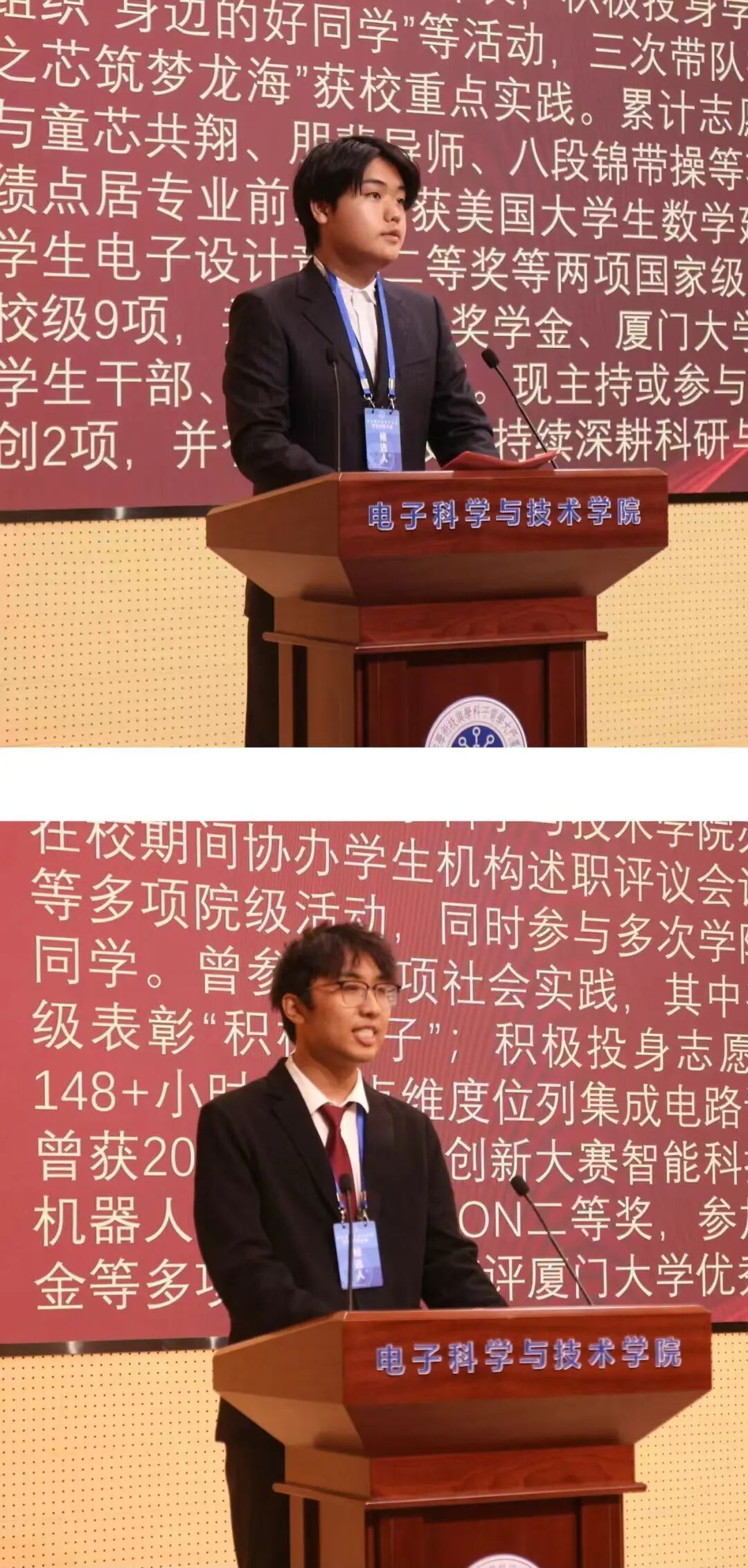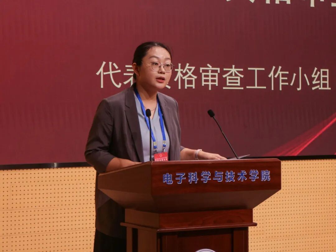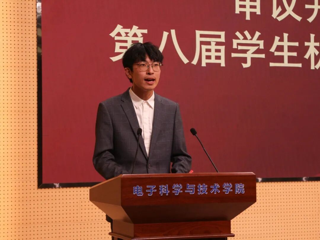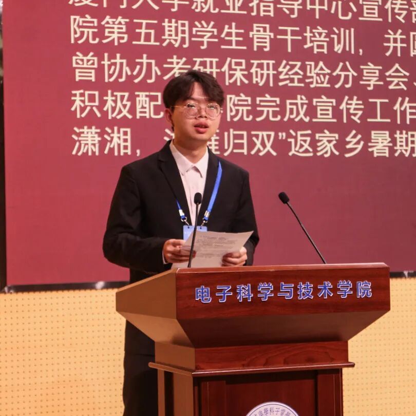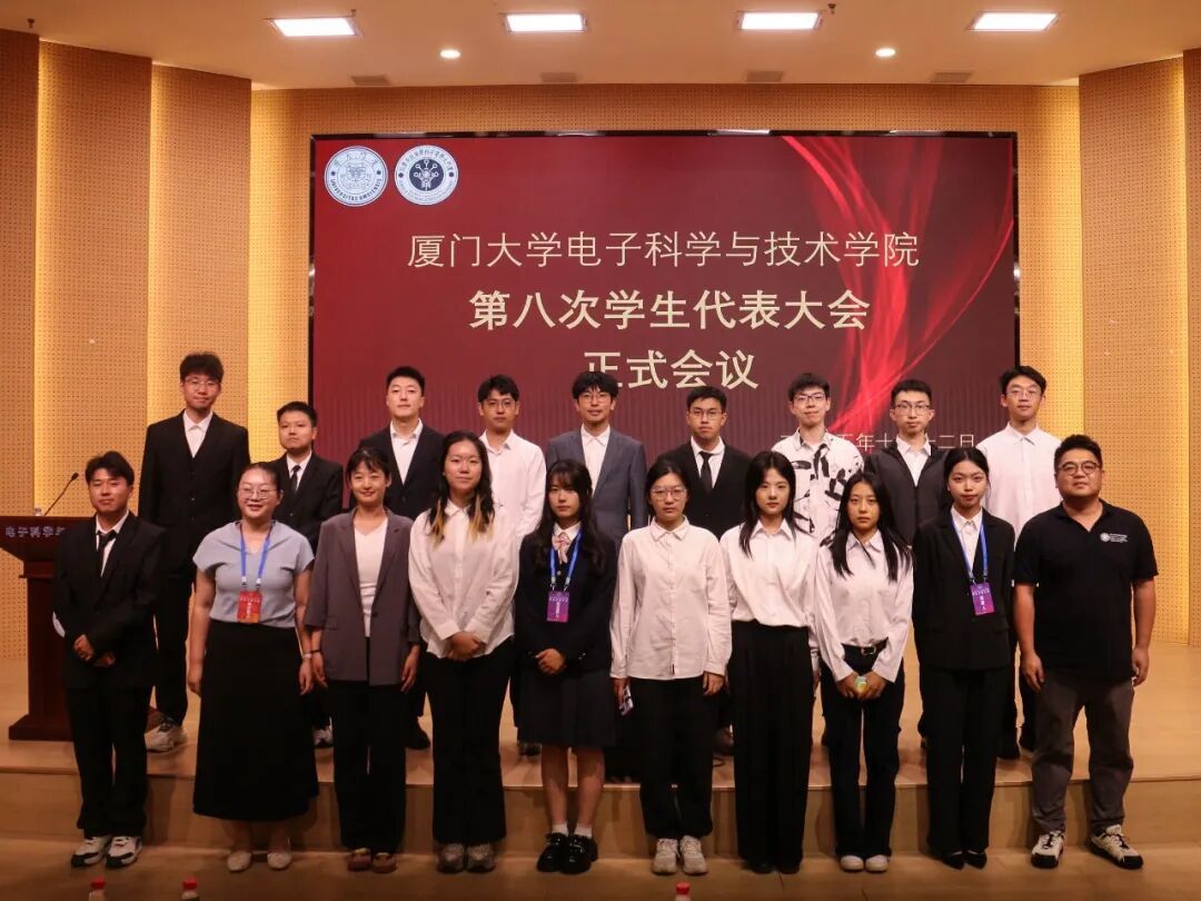 10月12日,电子科学与技术学院本科生第八次学生代表大会在南存钿楼报告厅召开。学院党委副书记林蕊、团委书记胡凡、辅导员林燕红、辅导员闵舒媛、校学生会主席团代表钟佳伶、公共卫生学院主席团代表王雅茹、能源学院主席团代表逄智超、环境与生态学院主席团代表于雨彤、海洋与地球学院主席团代表张耀增以及学院本科生学生代表参加大会。