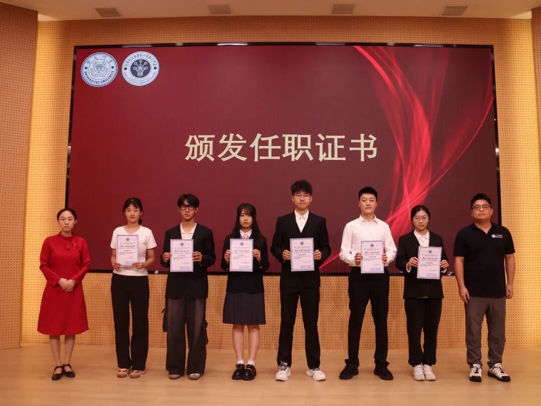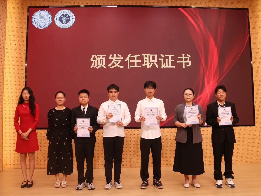 林蕊、胡凡、林燕红、闵舒媛为第八届学生机构委员颁发了任职证书。
