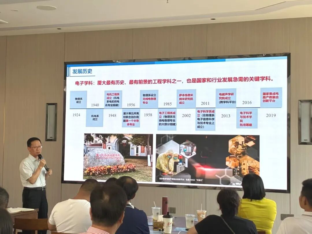 活动伊始,方银水对莅临的来宾表示欢迎,提及当前科技革命和产业变革背景下高校肩负的重任,并向各位详细介绍了学院的发展历史。学院作为国内电子信息领域的重要高水平科研与人才培养基地,始终深耕产学研深度融合领域,持续推动创新成果转化与产业需求对接。本期研修班正是学院积极响应国家创新驱动发展战略、主动服务地方产业升级需求的重要举措。随后,方银水详细介绍了学院的发展历程与核心学科优势。他指出,电子学科作为厦门大学历史积淀深厚、发展前景广阔的重要学科之一,是支撑国家与行业高质量发展的急需关键学科,在人才培养质量提升、学科体系完善优化及重大科研创新突破等方面取得了显著成效。