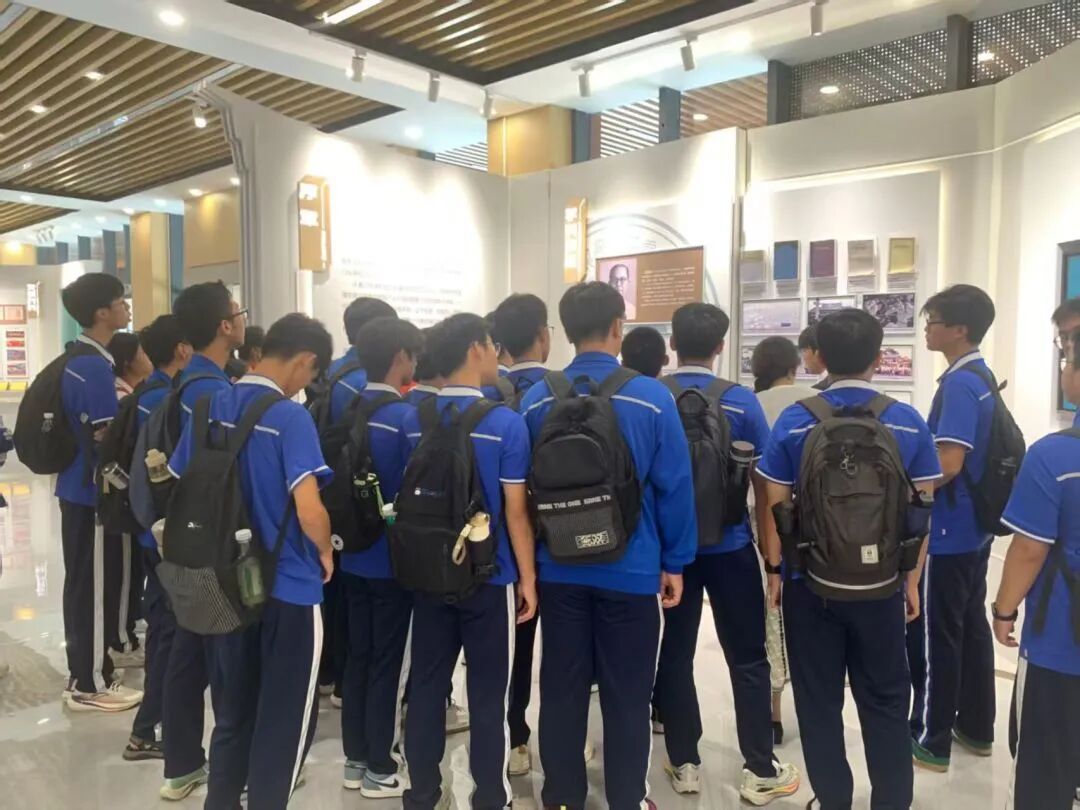 在讲解员的带领下,诏安一中师生们参观学院文化长廊,开展了一次沉浸式参观学习。长廊依次呈现“学科底蕴”“电子之光”“党旗灼灼”“科研进展”等主题内容,生动展现了厦门大学电子学科筚路蓝缕、从无到有的发展历程,以及在科研创新与社会服务等方面取得的重大成就。同学们不时驻足凝视、认真聆听,积极交流讨论,对厦门大学电子学科建立了初步的认识。