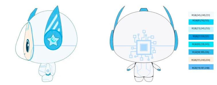 (4)图案:“厦小电”胸前的心形图案,以芯片与电路为灵感巧妙融合而成,它巧妙地连接着厦小电的四肢,是为它源源不断地提供能量的源泉,是科技与生命的紧密相连。