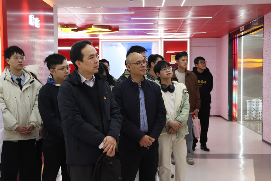 韩海雄带领全体成员在党旗前庄严宣誓。面对鲜红的党旗,全体党员整齐列队、高举右拳,重温入党誓词。铿锵有力的誓言在纪念馆前回响,党员们深受触动,立志将继续传承革命精神,勇担时代责任,在科研创新与社会服务的道路上不断追求卓越,为实现中华民族伟大复兴贡献青春力量。