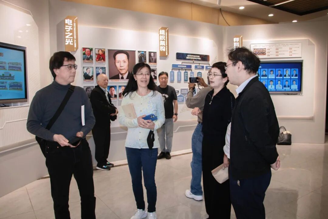 随后,一行人前往文宣楼,参观了院史文化长廊、国家集成电路产教融合创新平台展厅和实验室。通过丰富的展陈内容,来宾深入了解了学院发展历程,以及在人才培养、科研创新与产教融合等方面取得的显著成效。